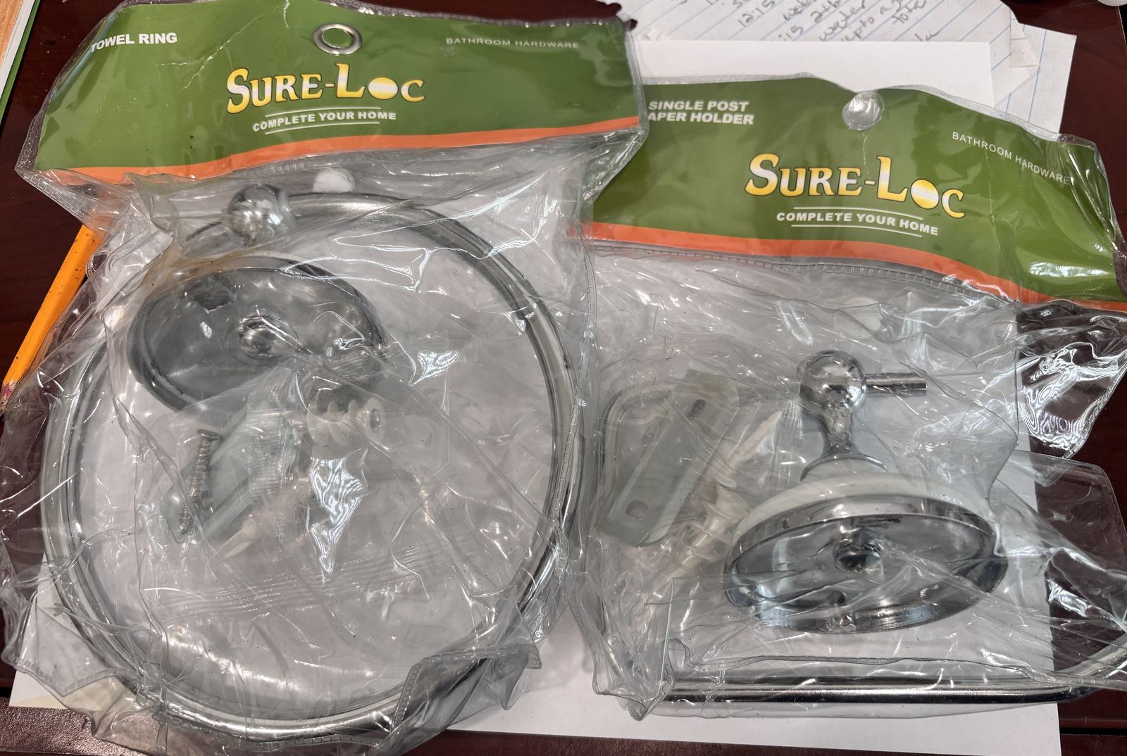 PayPalLot of 28 Sherlock towel, rings and single post toilet paper holders 14 sets New in package if interested please call or text Jamie at 385-471-4333. They are white and chrome color.