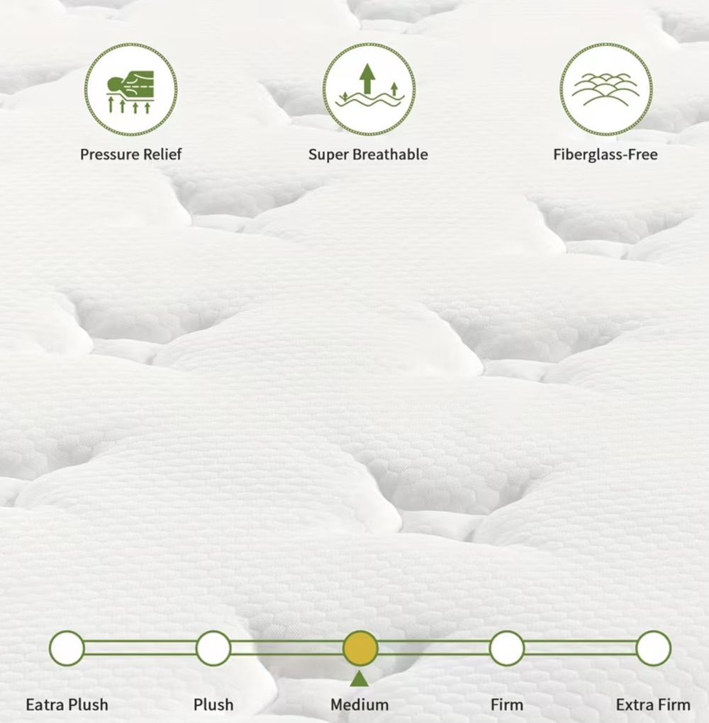 Features: Hybrid design (memory foam + pocket springs) Cool, breathable feel with minimal motion transfer Works with any queen bed frame — no box spring needed Made with CertiPUR-US® certified materials