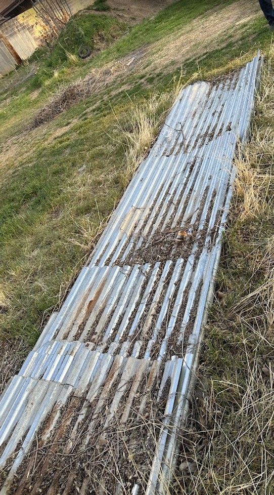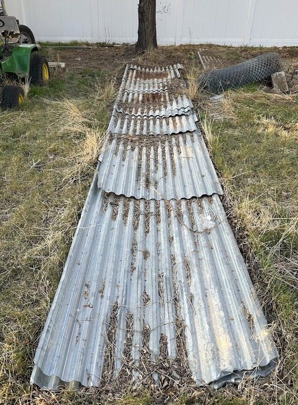 Corrugated metal sheets. Quite a few long sheets there with a few short sheets. $600 OBO.