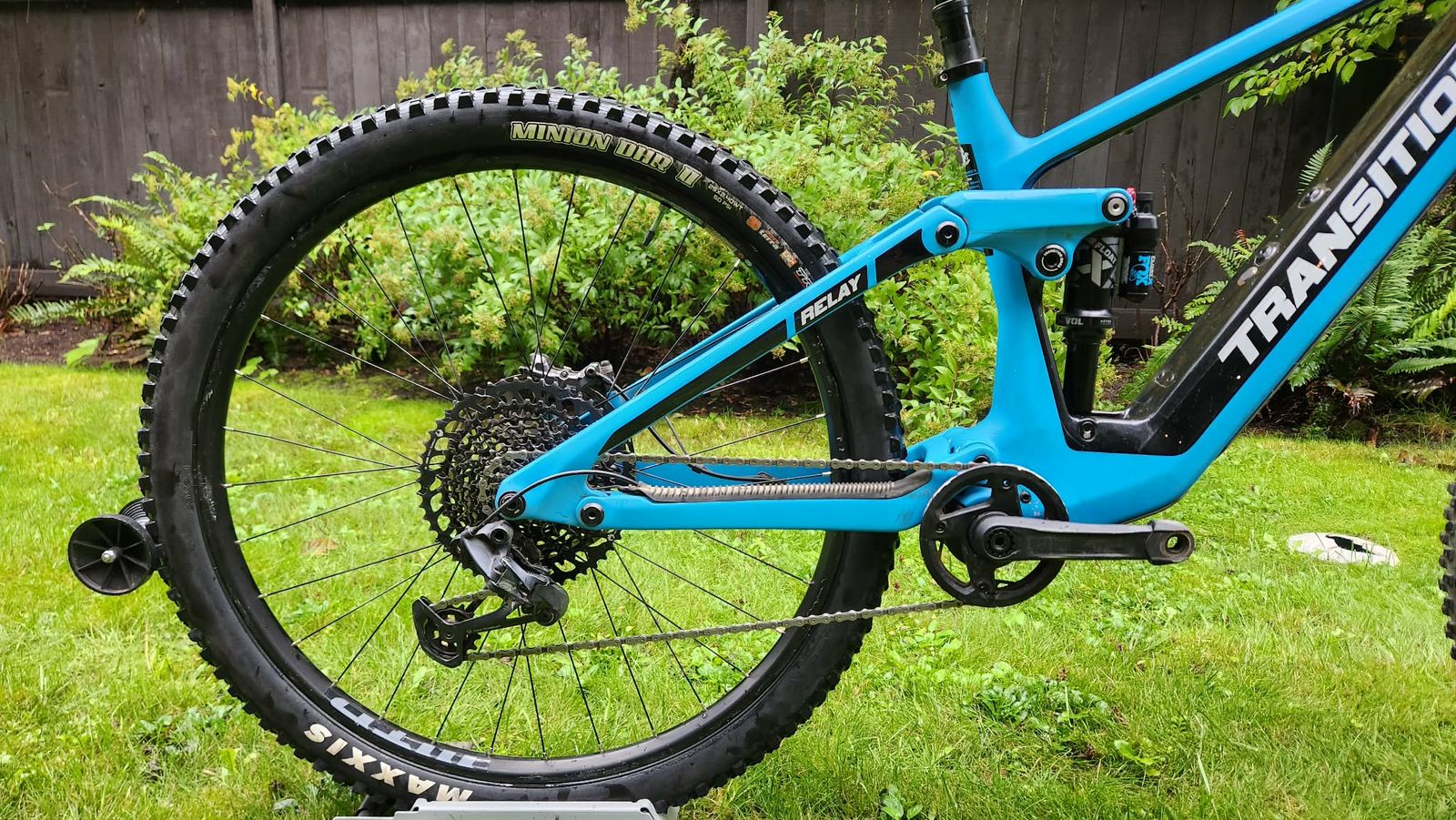 24 Transition Relay size GX size large with extra battery. It’s an impressive light E-bike weighing 44 lbs when purchased from Highland Cyclery. With the impressive feel of the Fazua motor system it really hides It's weight and feels like an analog enduro bike with the bonus of just the right amount of assistance. The Fazua system has been great and I have no major complaints. I purchased a second battery for big days and it will come with the bike. Bike is setup as full 29er but is mullet compatible. Just about everything is of the stock Carbon GX build with the exception of better XT 4 piston brakes. Bike has 800 miles on it with a good portion of those miles being road miles as I did a lot of riding from my house because why not it's an ebike! Bike is in great shape except for some some paint chips by the bottom bracket. Transition has made something special with the Relay, it will not disappoint!