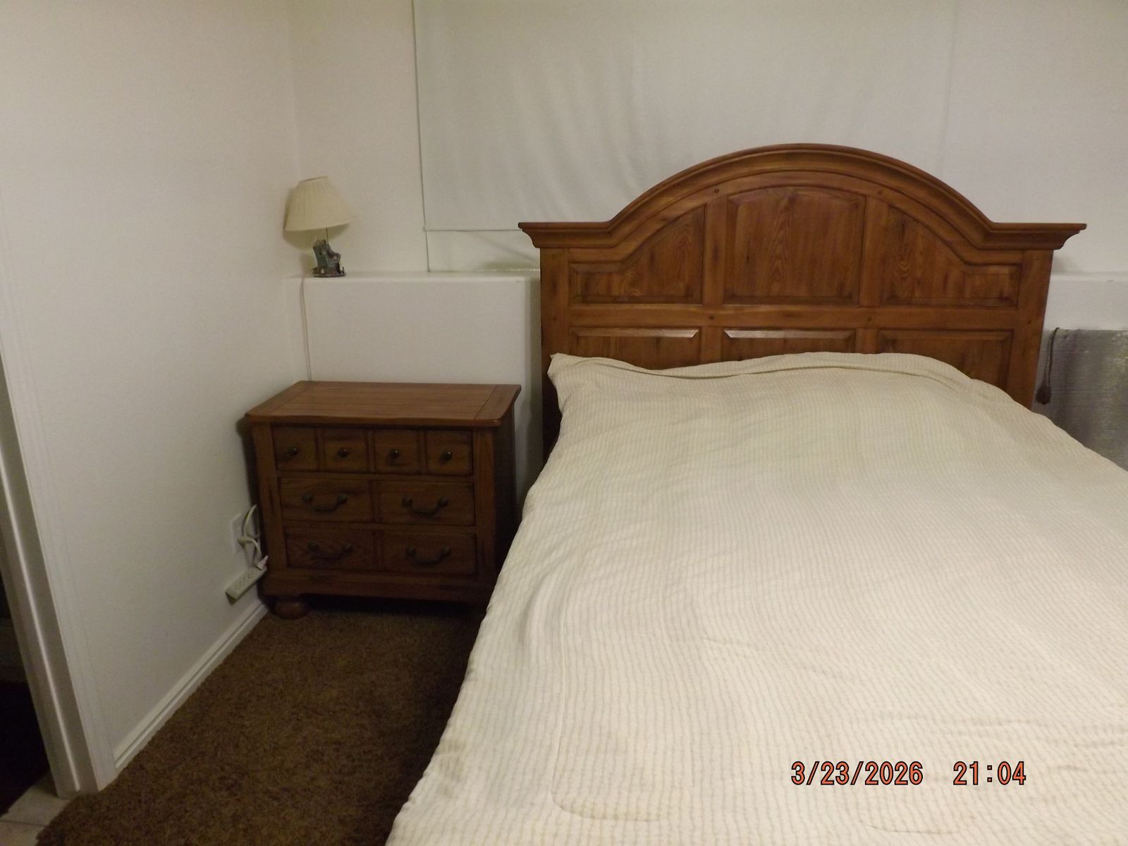 2 dressers, 1 night, whole bed frame/mattress set (full size). There is also a mirrior for the dresser, not pictured. Solid wood. Great condition, 1 handle on the dresser is missing.