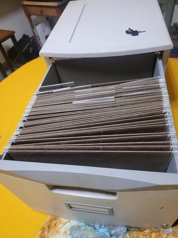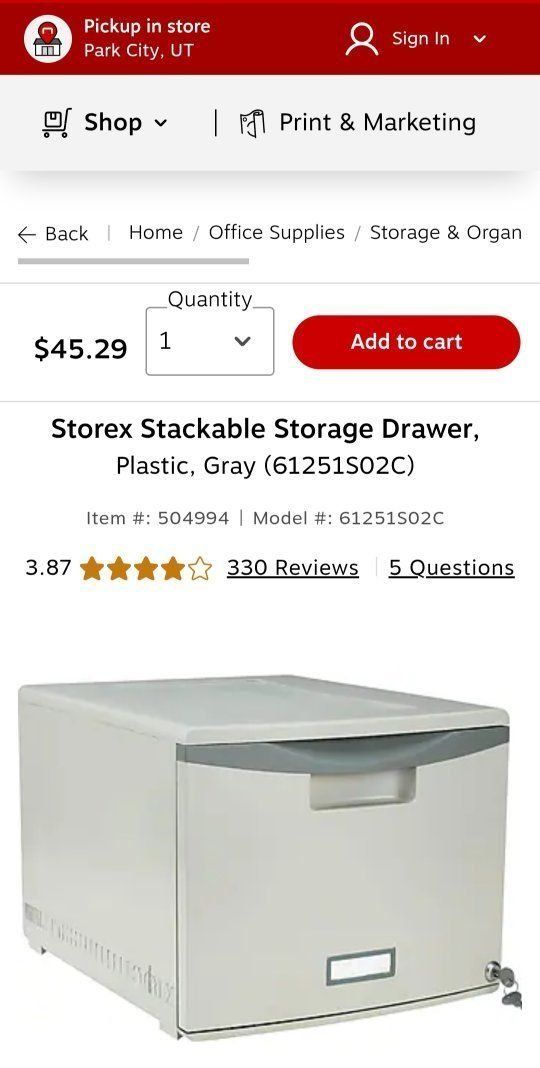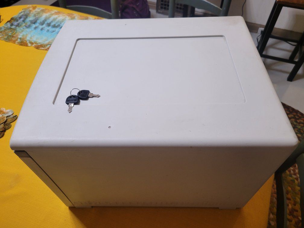 VenmoStorex plastic filing cabinet Lockable and has two keys. Dimensions are listed in the picture. Paper file folders included.