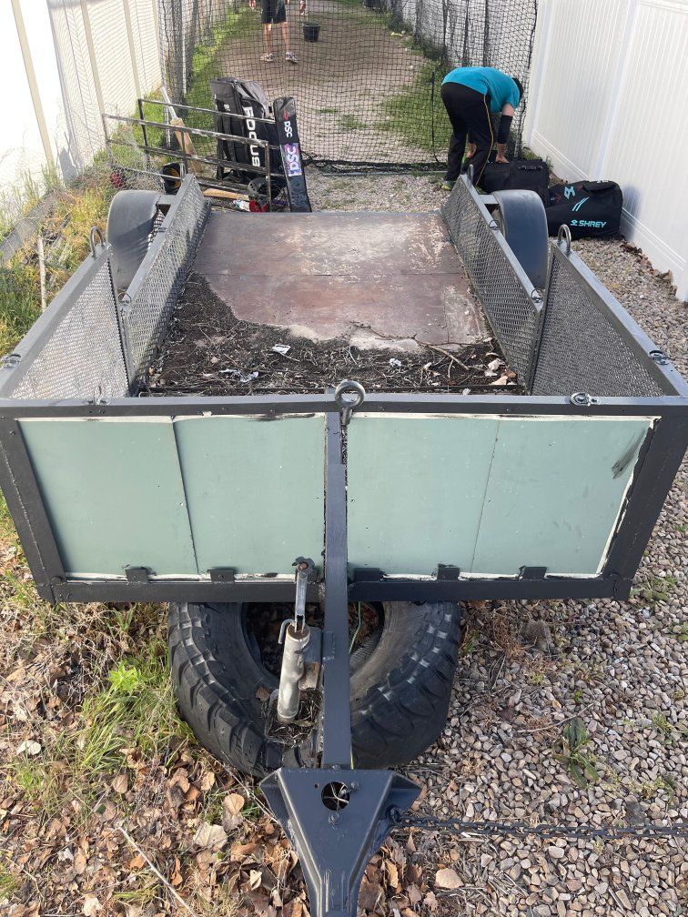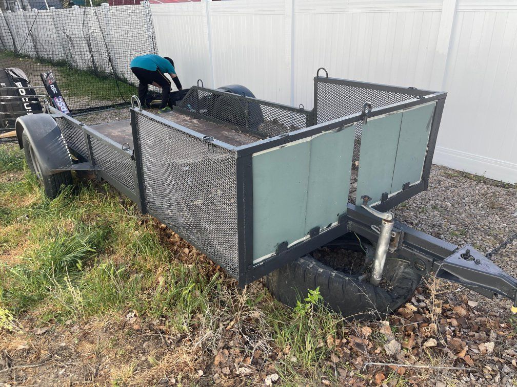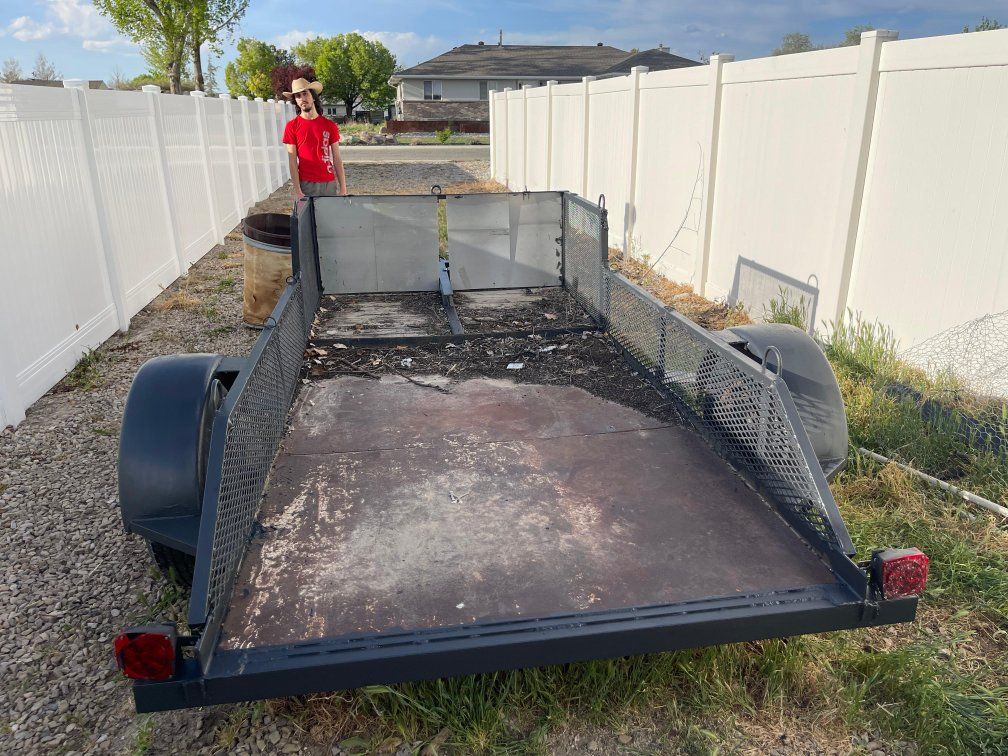 Solid and reliable utility trailer, perfect for hauling equipment, yard waste, or job site materials. Built with sturdy steel mesh sides and a reinforced frame, this trailer is designed to handle tough loads. This is a very sturdy utility trailer. Roughly 5.5 ft by 12 Ft. 4 pin connector, 2" ball receiver, attached adjustable jack. Brake lights work, tires are good. Cash in hand only, if ad is up, it's available, located in Draper.
