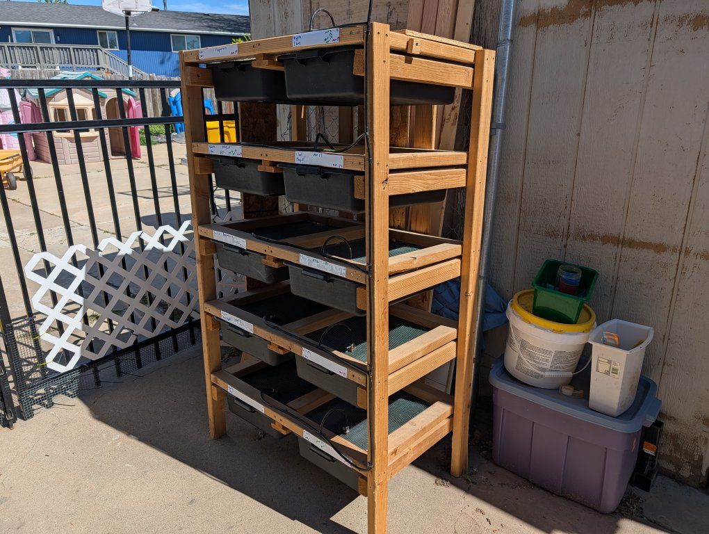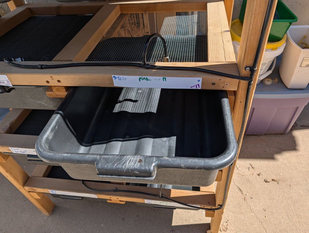 ZelleI have 5 rodent breeding racks for sale. These are great racks, I just don't need them anymore. They all come with bins and water systems. I also have some extra bins. Let me know if you have any questions. Asking $100 each. Thanks