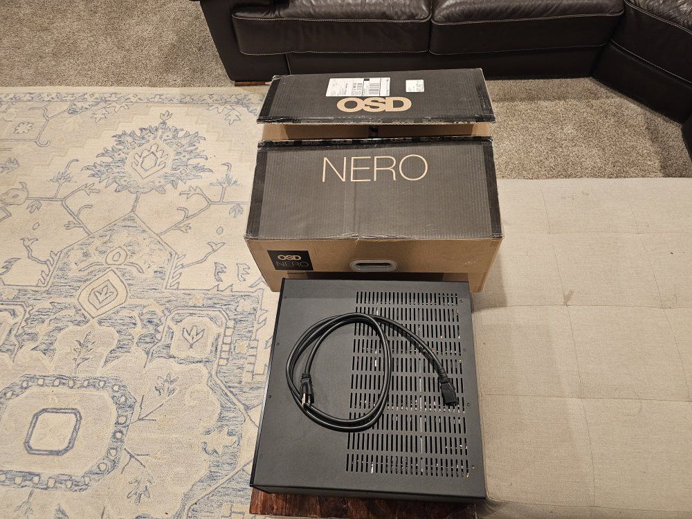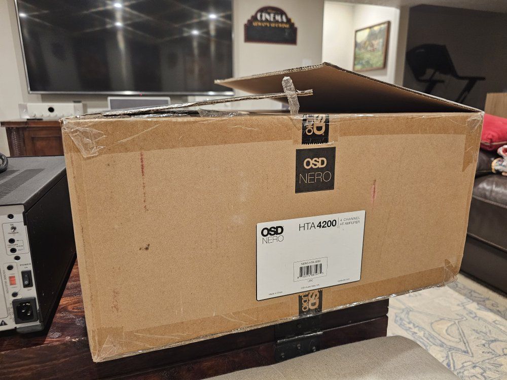 OSD Nero HTA4200 amplifier in perfect like new condition. 4x 140w or bridge at 2x 400w. This amp has been very lightly used in a dedicated theater room to run height speakers. It's totally overkill for what I need. For fun I've used it to listen to my Bowers and Wilkins towers. It sounds incredible. Includes original box and manuals. The amp currently sells for 700 plus tax. My price is firm.
