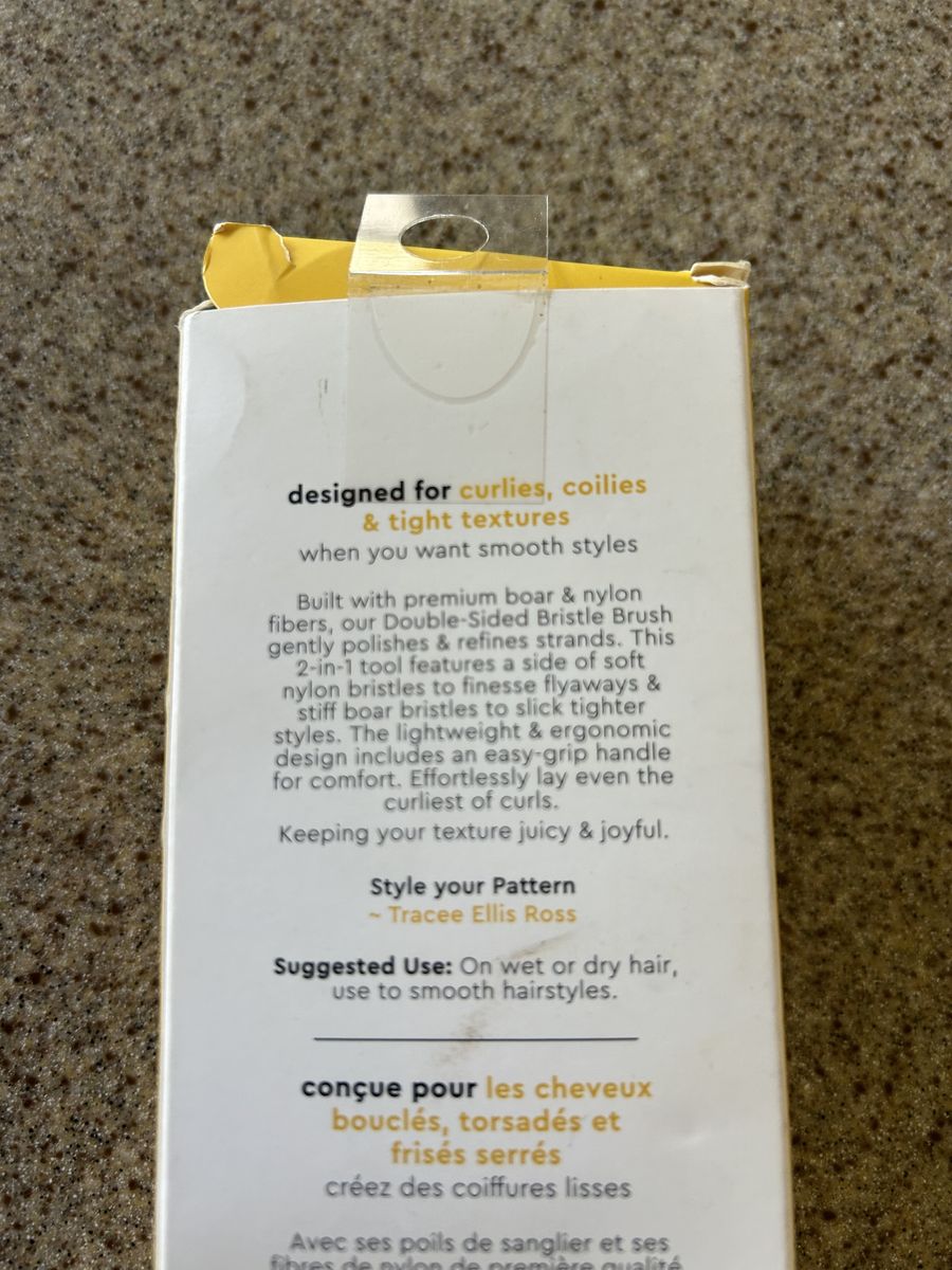 VenmoNew in the box pattern brand double sided bore bristle and nylon fiber brush for your hair. Perfect for curly coils and tight textures. Helps add smoothness. Can be used on wet or dry hair. Cash or Venmo. Located in and picked up from Alpine, Utah.