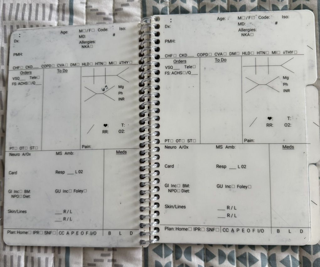 VenmoMed/Surg and PCU report book, by Moxie PRN. Cleans with alcohol pads, great condition. Comes with additional report pages. Retails for $38+ with additional pages.