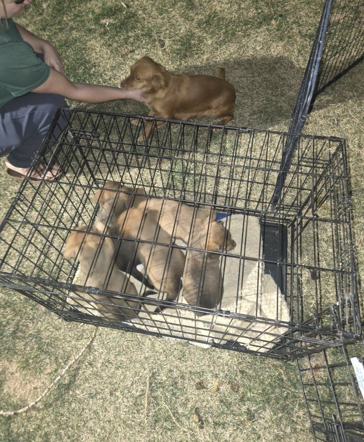 dad is a purebred corgi hes small and stocky in size 20 pounds mom is a chiweenie 15 pounds theyre big like dad between the 2 the black collar pup is bigger pups are friendly and playfull born feb 4th come get one