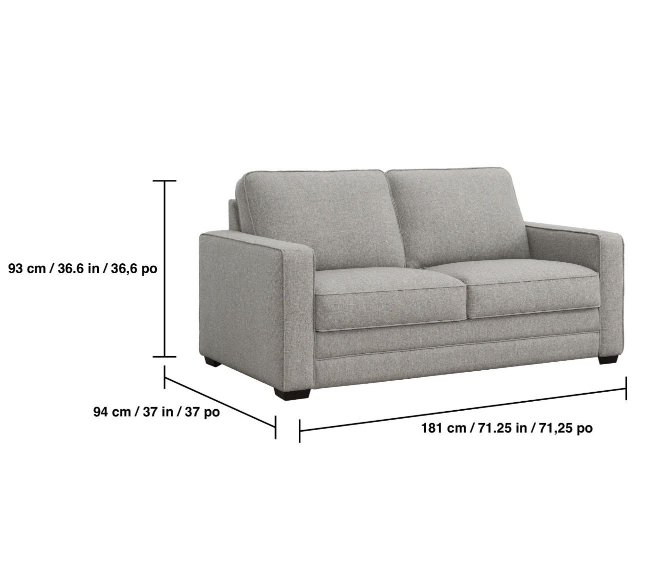 Sofa Dimensions: 71.25” L x 37” W x 36.6” H Mattress Dimensions: 71.25” L x 81.1” W x 29.5” H
