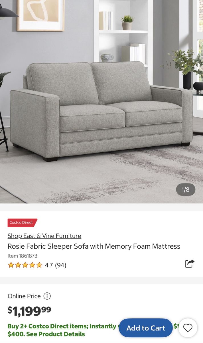 VenmoEast & Vine Furniture - Rosie Fabric Sleeper Sofa with Memory Foam Mattress in LIKE-NEW condition!