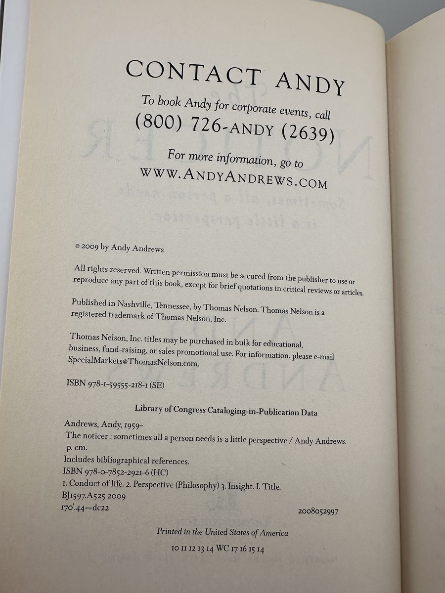ApplePayHardcover copy of The Noticer by bestselling author Andy Andrews. This inspirational book delivers powerful life lessons through storytelling, focusing on perspective, relationships, and personal growth.