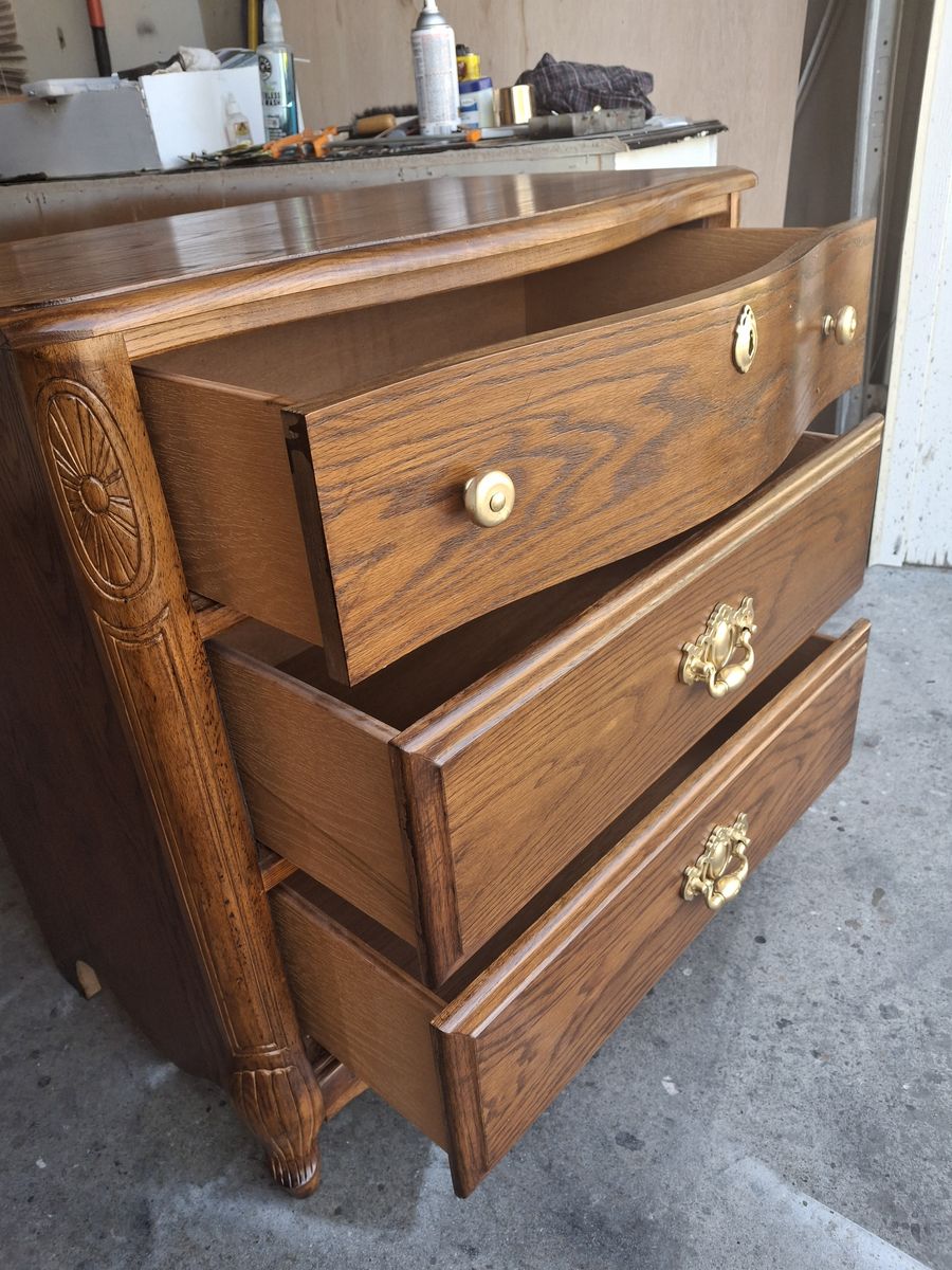 Zellesolid wood/deep drawers-used and in fantastic condition-no scratch-no dings-non smoker home-smooth sliding drawers and will not fall out--firm price
