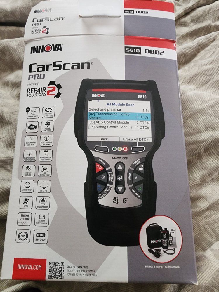 New Innova 5610 bi directional OBD2 scan tool. Purchased for over $400 asking $300 or a reasonable offer. Used once. A big list of features and applications. A Google search would be more beneficial than a description I'd put together. Tool works perfect, only selling for extra cash. No trades please, thanks for looking.