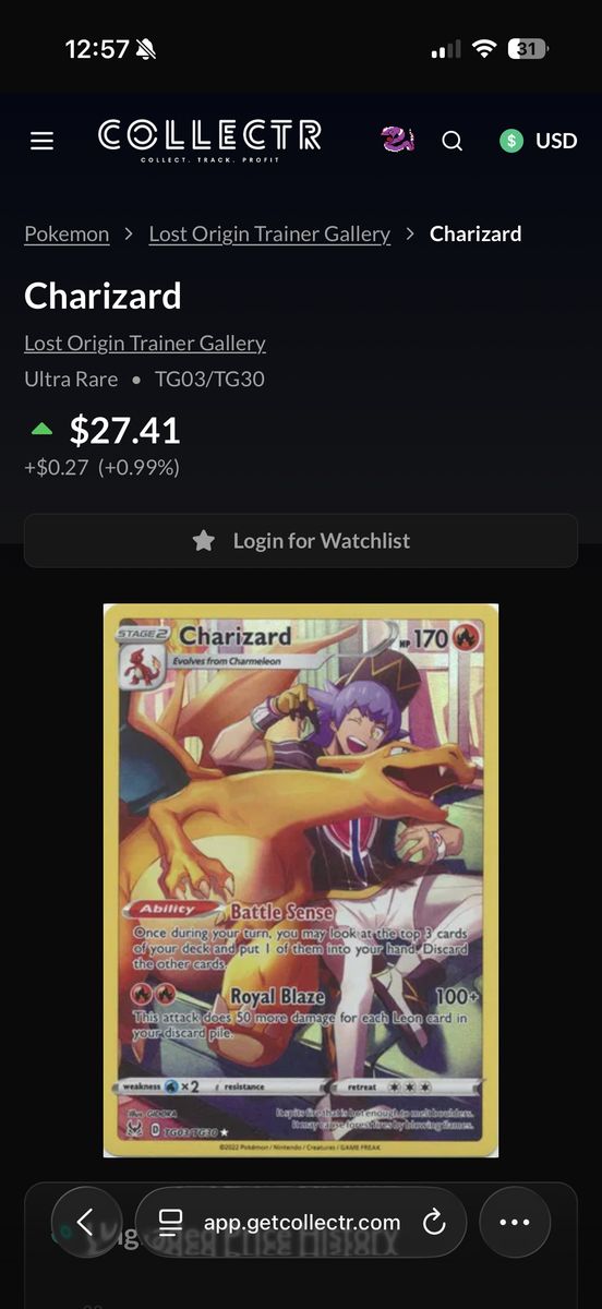 Pokemon Lost Origin Trainer Gallery Charizard TG03 NM Condition $25