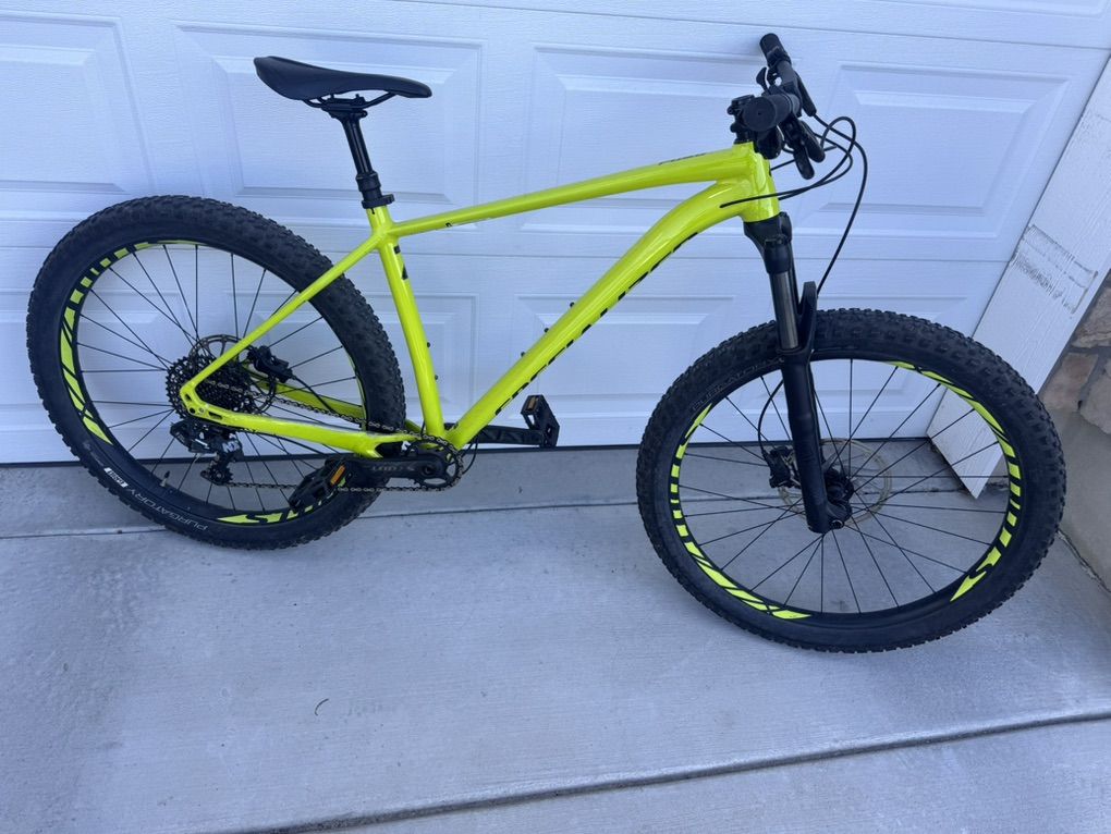 ZelleGreat hardtail for trail riding. Used moderately for two seasons and then retired to occasional street rides with kids. SRAM NX 11-Speed. SRAM Level hydraulic disc breaks. Rock Shocks Recode front suspension. Wide 27.5 x 3.0 tires. Casual, fun, bomb proof.