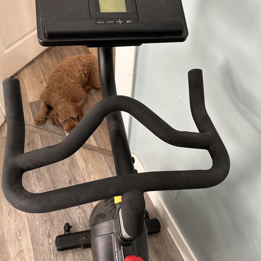 Pro-form Stationary bike. Got this at Costco about 3 yrs ago and have used it once or twice. It has been stored indoors in a clean home, smoke free home.