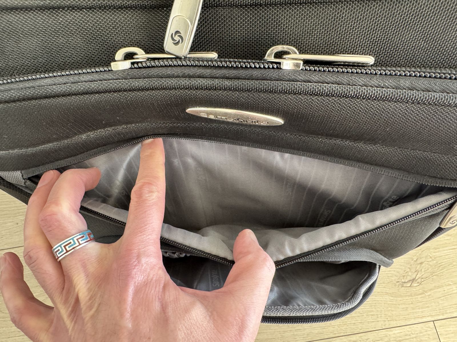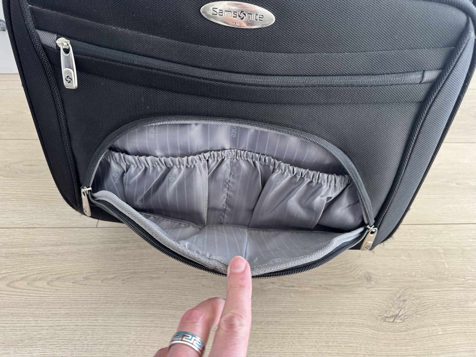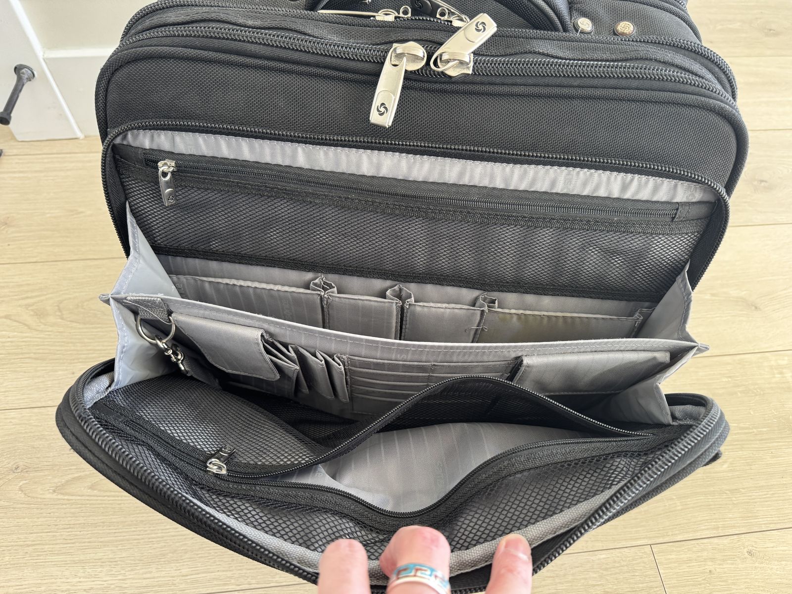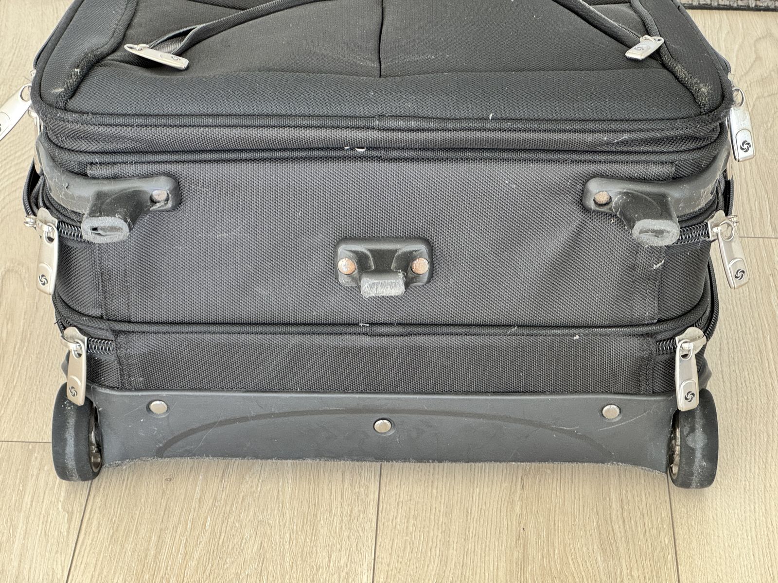 ApplePaySamsonite "Portable Office" carry-on bag/suitcase. Holds Laptop and MANY other items (See the details of the many pockets in the photos). Good condition. Nothing broken - handle telescopes smoothly. Plastic bottom panel and feet show normal wear.