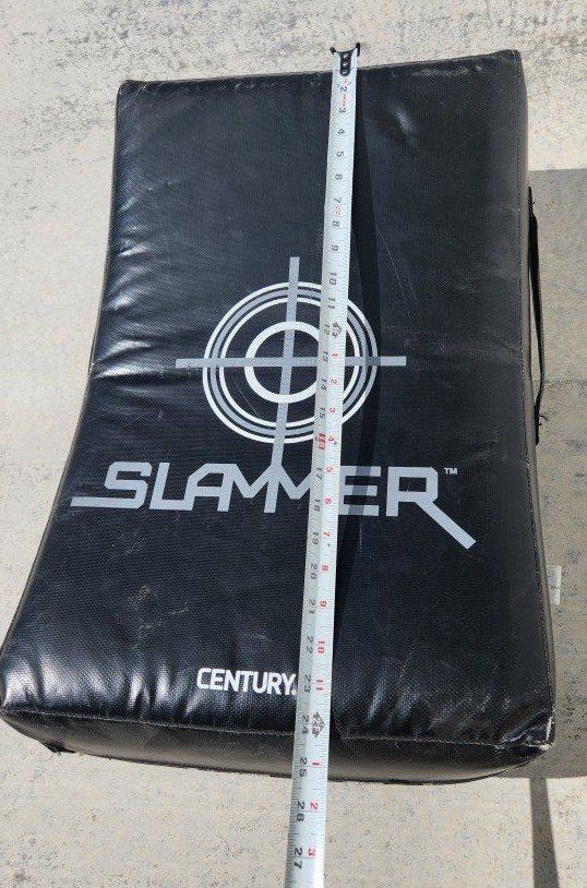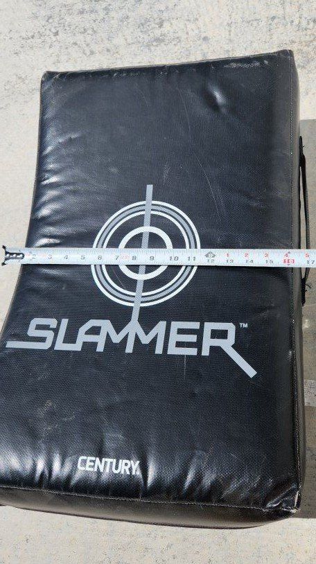 VenmoThe Slammer Shield has a concave shape that allows for improved control when catching strikes and kicks, with two back handles and one on each side for a sure grip
