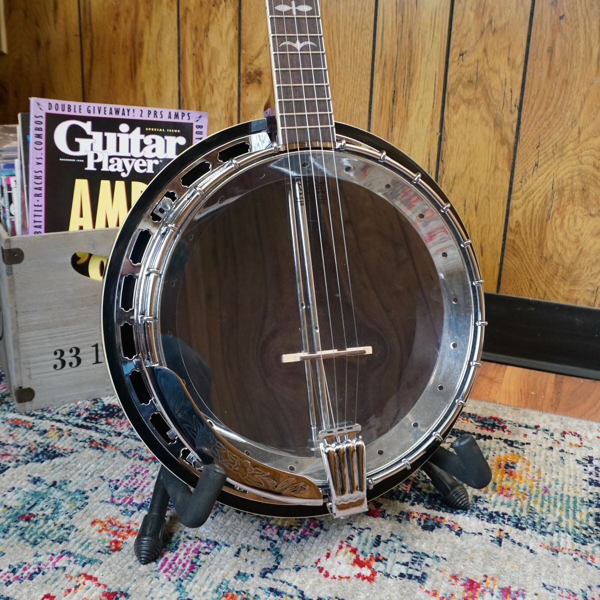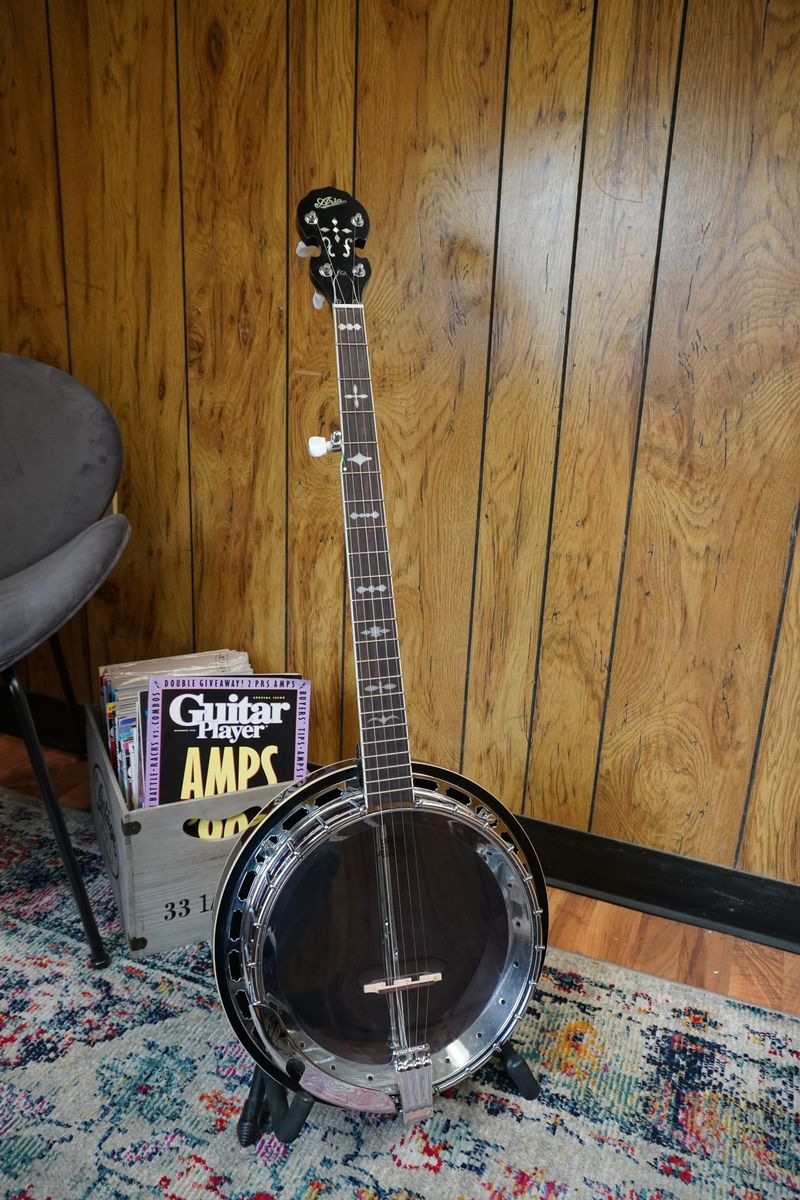 The banjo is in good shape with very minimal wear. Not much is know about this instrument it is made nicely , and sounds great. Banjo will ship with a hardcase.