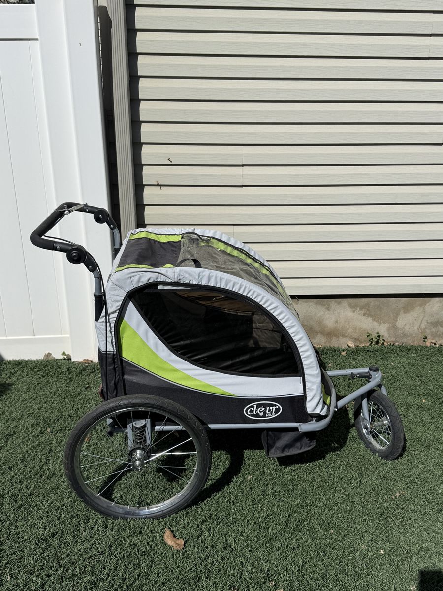 ClevrPlus Deluxe 3-in-1 Double Seat Bike Trailer Stroller Jogger for Kids, Green