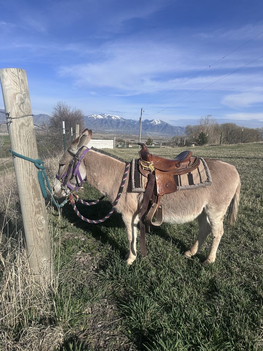 ApplePayMeet Oliver!! He is a 9 year old 36” mini donkey Jack. Oliver is very sweet and friendly, LOVES attention and, scratches. He knows how to ride and drive and is gentle around children. Message me if you have any questions or of you’d like to come and meet him!