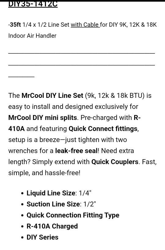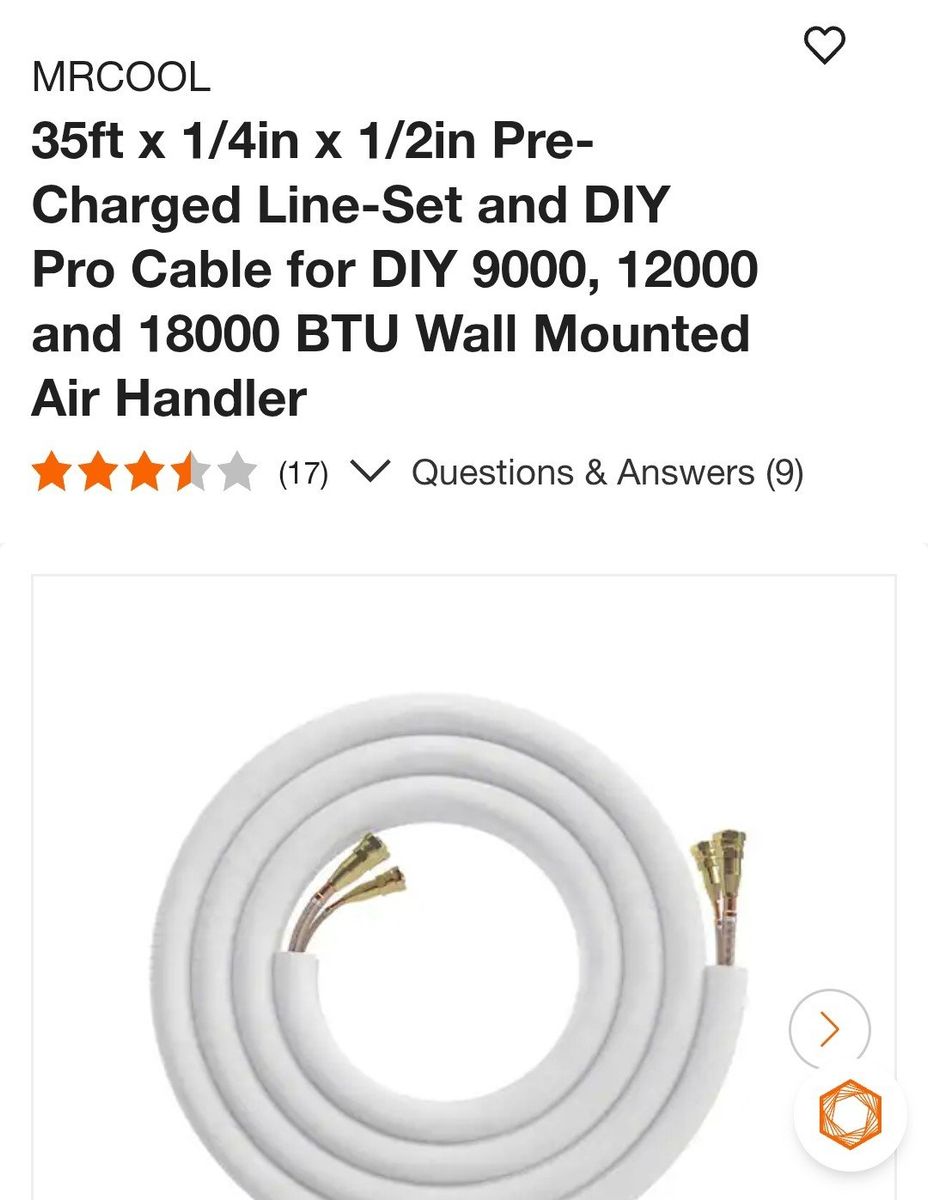 Venmo35ft x 1/4in x 1/2in Pre-Charged Line-Set and DIY