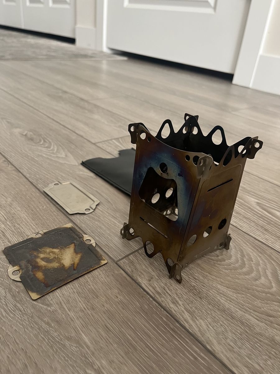 VenmoEmberlit fireant titanium wood or tablet fuel backpacking stove. Metal shape is like new and not bent. Discoloration is from use with wood fuel. Cash or Venmo