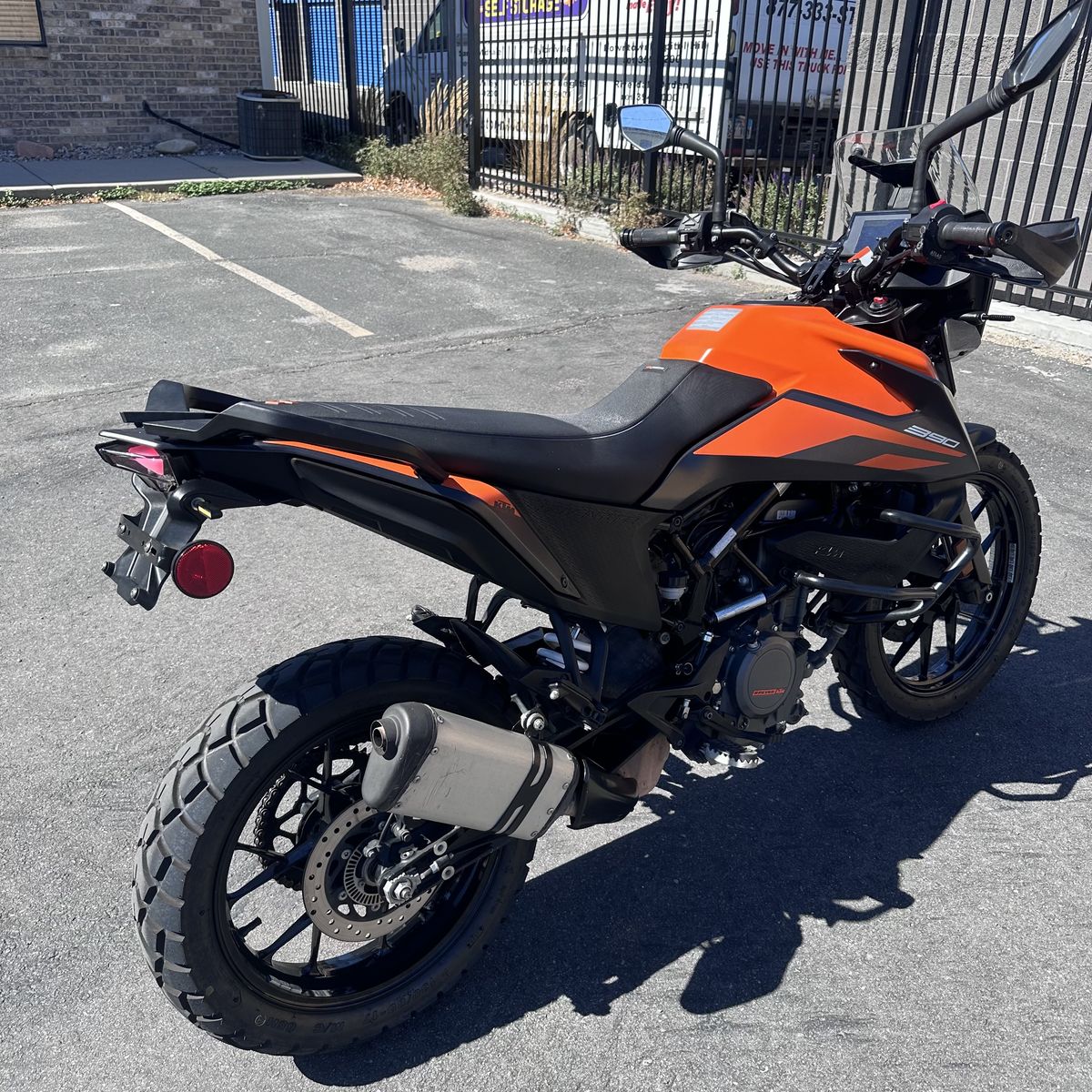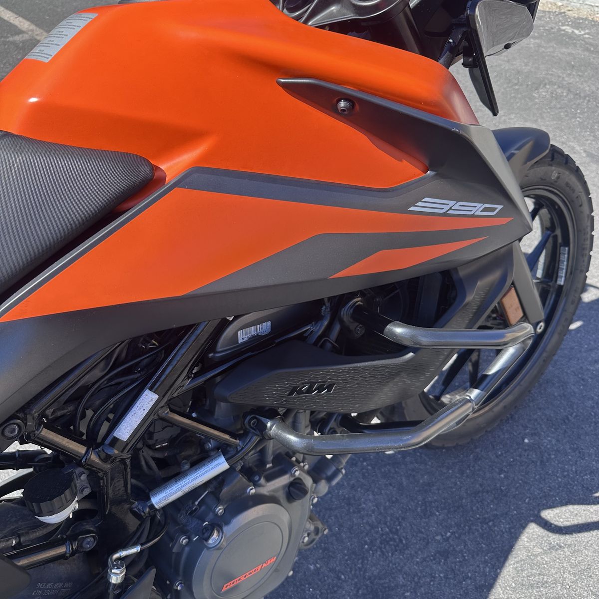 The 2021 KTM 390 Adventure features a 373 cc liquid-cooled, DOHC single-cylinder engine that delivers enough power for spirited adventures without being overwhelming for lighter riders. It includes ABS (with switchable street/off-road modes), cornering traction control, ride-by-wire throttle, a slipper clutch, LED lighting, and a full-color TFT display to keep you well informed. Its 33.7-inch seat height, long suspension travel, and rugged chassis give it excellent capability for both paved roads and light off-road trails. Best suited for beginner to intermediate riders wanting a versatile adventure-style bike that can handle daily riding as well as weekend exploring! This one is running great with just 15,500 miles and a clean title!