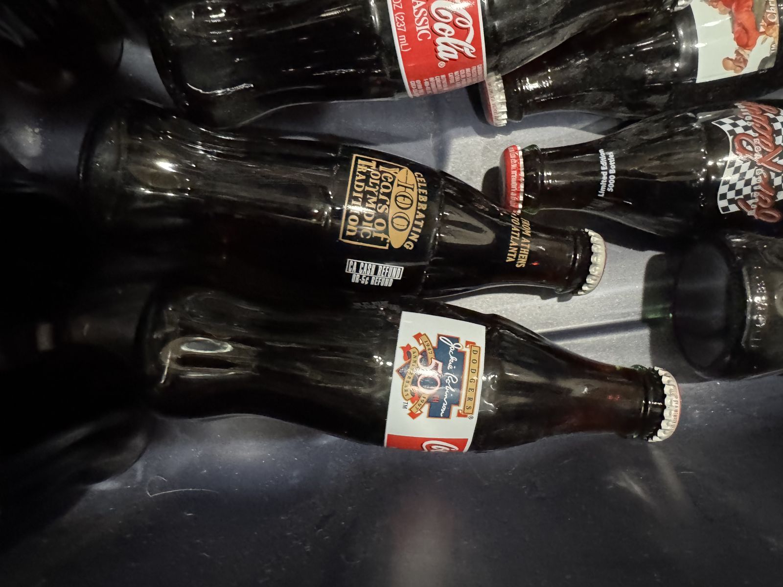 Variety of collectible Coke bottles. Christmas from '96, '97 & '98. Few different nascar. Several Olympic (2 different ones) Jackie Robinson, '93 baseball all star. '95 Cal Ripken record breaking. Plus, others. The empty ones are from other countries. This is for the collector or the re-seller. Selling as one item. You must take all. Not for drinking. Message with question.
