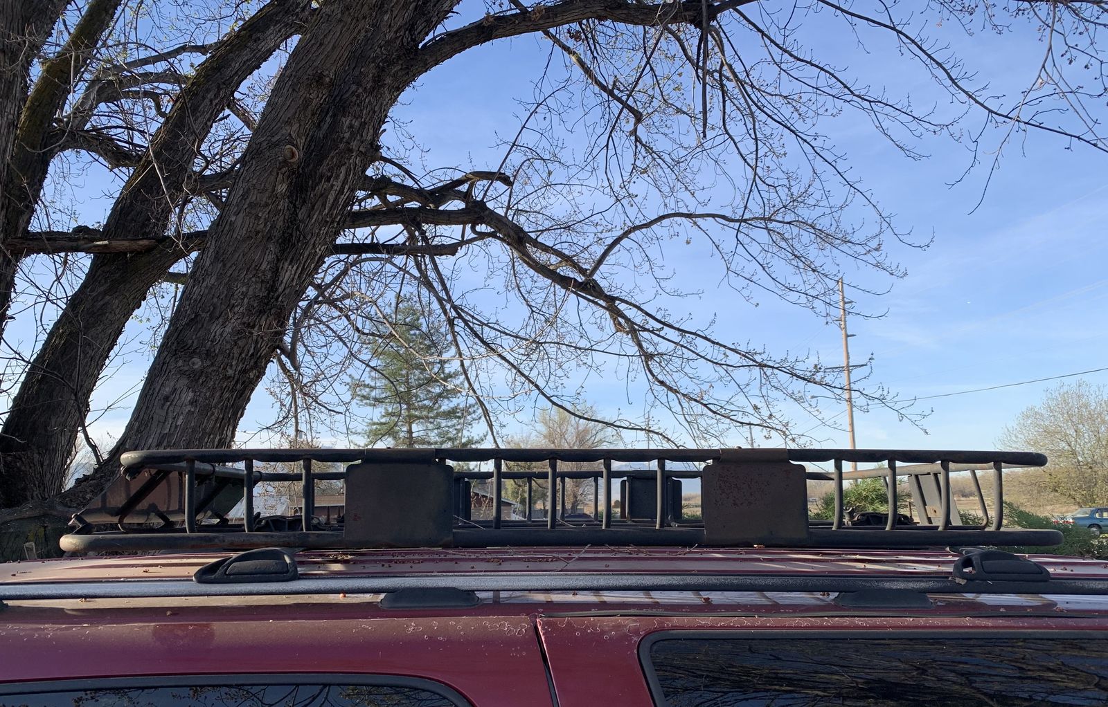 This is a curt brand roof mounted basket. It’s roughly 3x5.