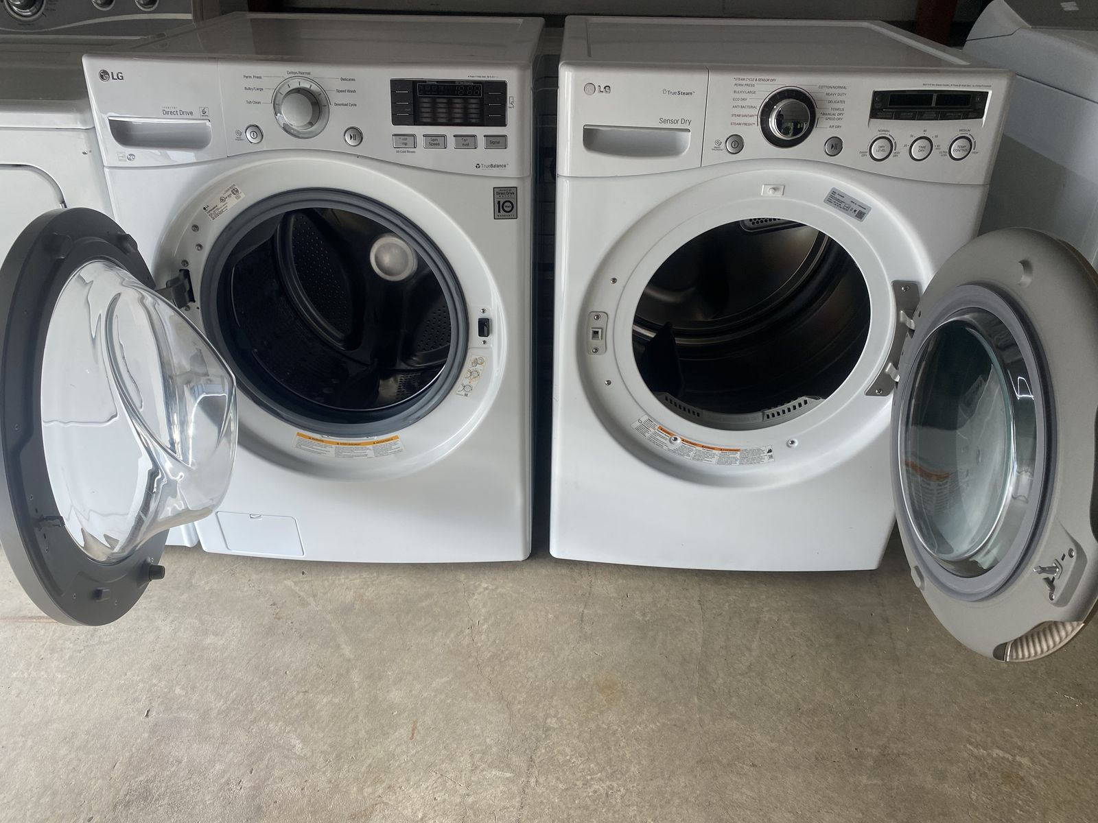 LG washer and LG true steam electric dryer for sale. The washer has 7 cycles, 5 wash temps 5 spin speeds, 5 soil levels, 5 signals and 8 options. The dryer is a true steam electric dryer with 12 cycles, 3 dry levels, 5 time dry,3 temp controls and 5 options. They are in very excellent working condition and are also a great set. CASH ONLY. Call or text me at 435-538-0178