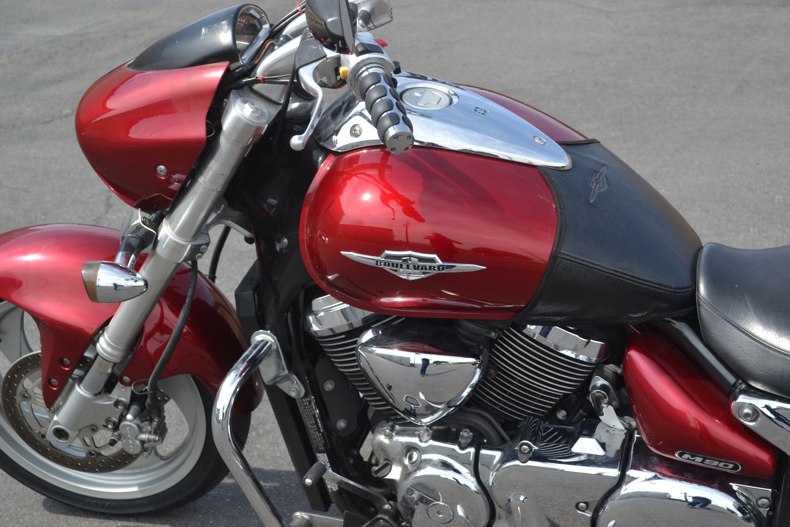 The 2009 Suzuki Boulevard M90 packs a 1500cc V-twin with fuel injection and shaft drive for strong, reliable power. Its aggressive styling features a wide rear tire, sleek fenders, and a low, muscular stance. Dual front disc brakes and an inverted fork deliver confident handling and braking. This one has just 19,300 miles, a clean title, and is running great! A great choice for riders who want big cruiser power with a sporty edge.