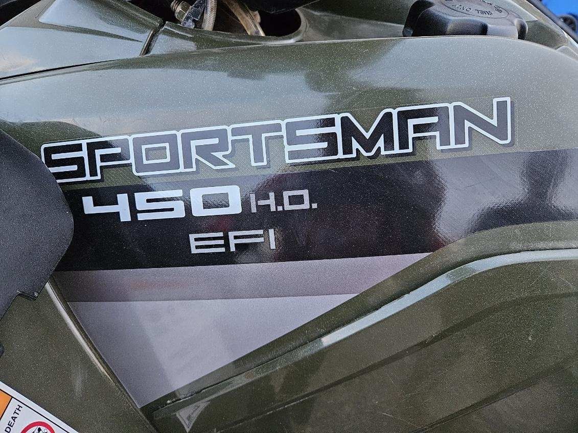 2016 Polaris Sportsman 450 H.O. EFI with low miles. 1410 miles On demand true AWD/2WD 31 horsepower 567 cc engine with electronic fuel injection Automatic transmission Large front storage compartment New battery and K&N air filter