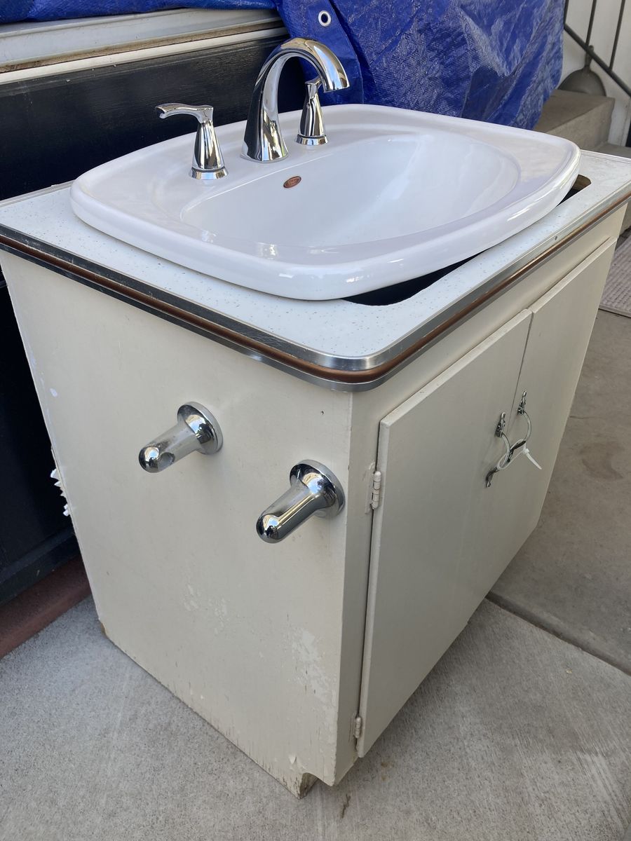 See the pictures for accurate description and condition. Includes everything in the picture (cabinet is going to landfill soon).Only used for about 6 months. Sink is a bit dusty from sitting outside over the weekend.