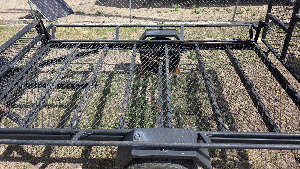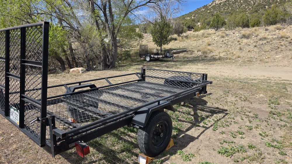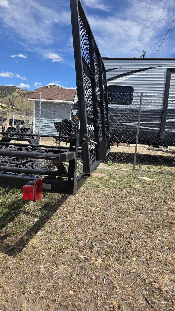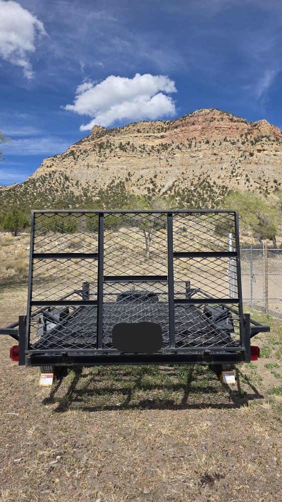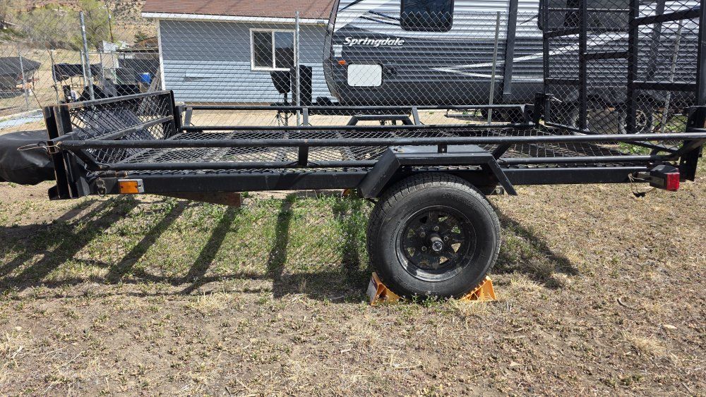 ZelleSide-load, drop-gate utility trailer. Fits two four-wheelers perfectly. New tires and bearing buddies were installed in August of last year, and a brand new jack was also installed. Tie-down eyelets were added for easy use of ratchet straps.