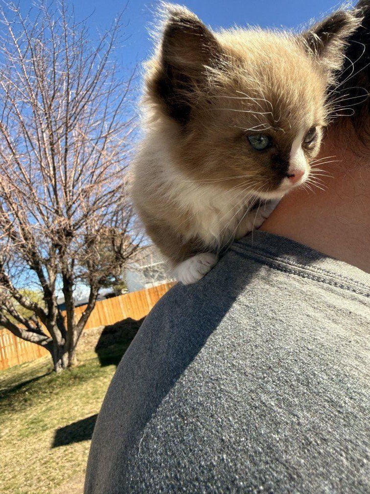 ZelleThis is our last available TICA Ragdoll kitten. He is so loving and affectionate. We haven't named him, he is very playful as well. Our kittens come with a 5 year health guarantee, DNA records for both parents, pedigree if needed, show quality for sure and he is a mitted chocolate bi-color Mink Ragdoll. So he is pretty rare as far as show quality with his coloring. We would be willing to sell breeding rights for the right situation and payment amount. He is currently priced as a household pet. He is waiting for his furever home, don't be shy.