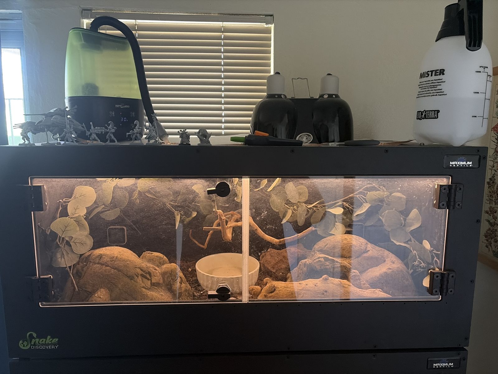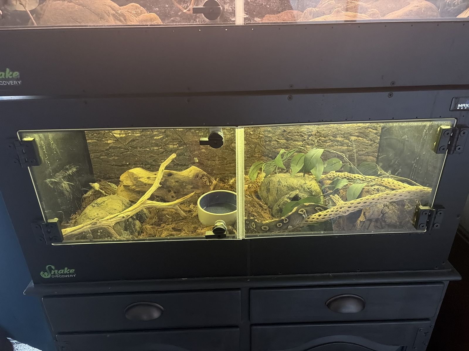 ApplePayFull ball python set up. Come with two maximum reptile PVC enclosures with everything you need for both ball pythons. Come with the stand as well as two female ball pythons. 1 female is a banana yellow belly that is about 2 years old and 1 female chocolate mystic that is about 1 year old. All things included that you could need to have a perfect set up for the lives of the ball pythons. Asking for $1500 OBO. This is easily a $3-4k set up.