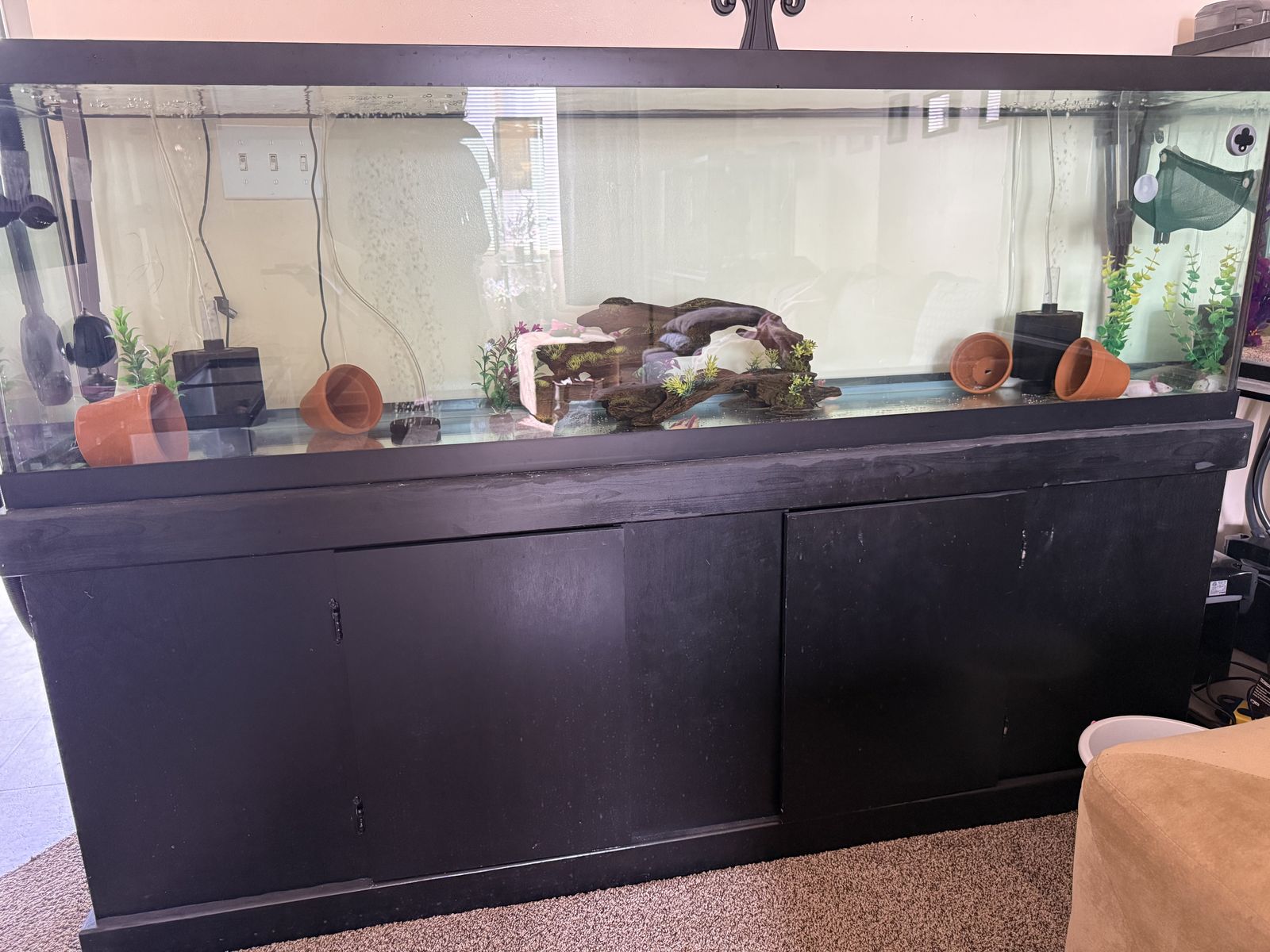 No scratches. I bought new from store 3 months ago. Empty tank with the stand.