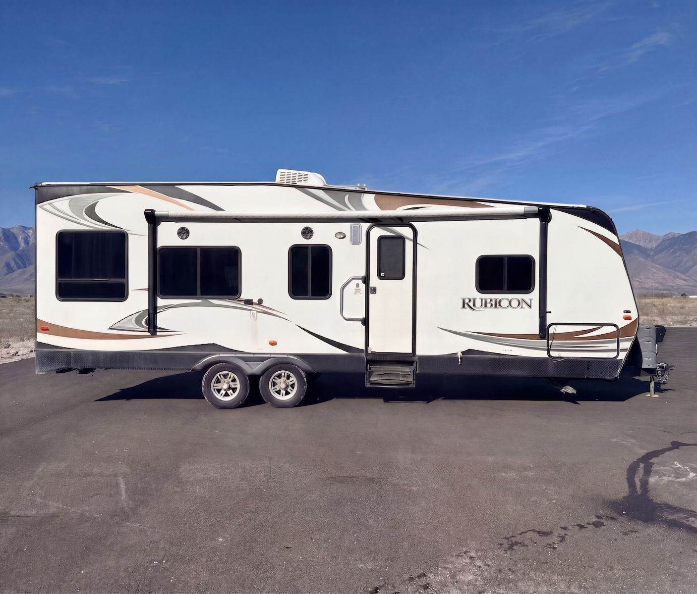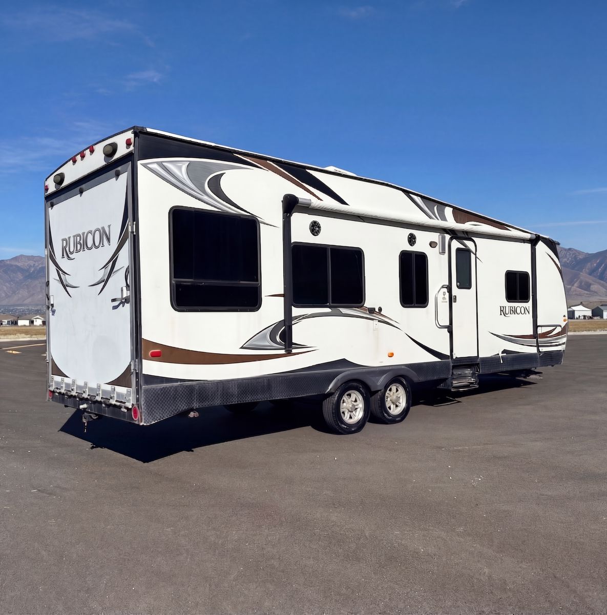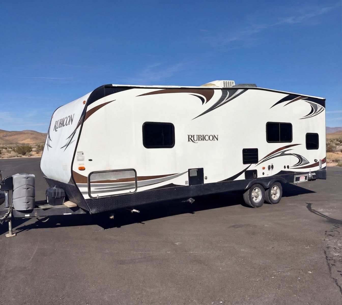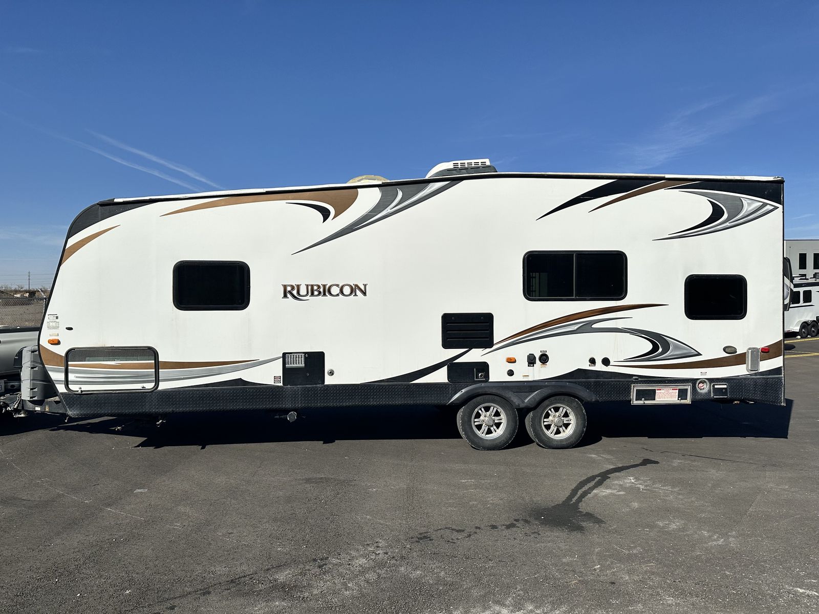 Hard-to-find setup with the features most people actually want. This 2014 Dutchmen Rubicon RB2500 has a 14' loading length, built-in fuel station with outside gas fill, and an Onan 4000 generator, making it a great toy hauler for desert trips, camping, and hauling bikes, quads, or other toys.