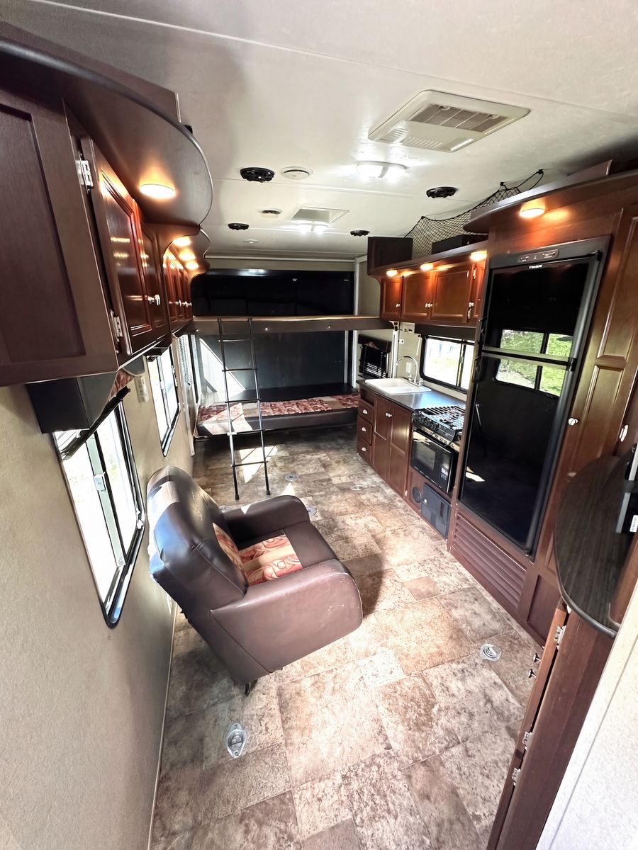 The floor plan is practical, the size is manageable at 31'6", and everything is here. If you’ve been looking for a clean toy hauler with a fuel station and generator already in it, this one is worth a look.