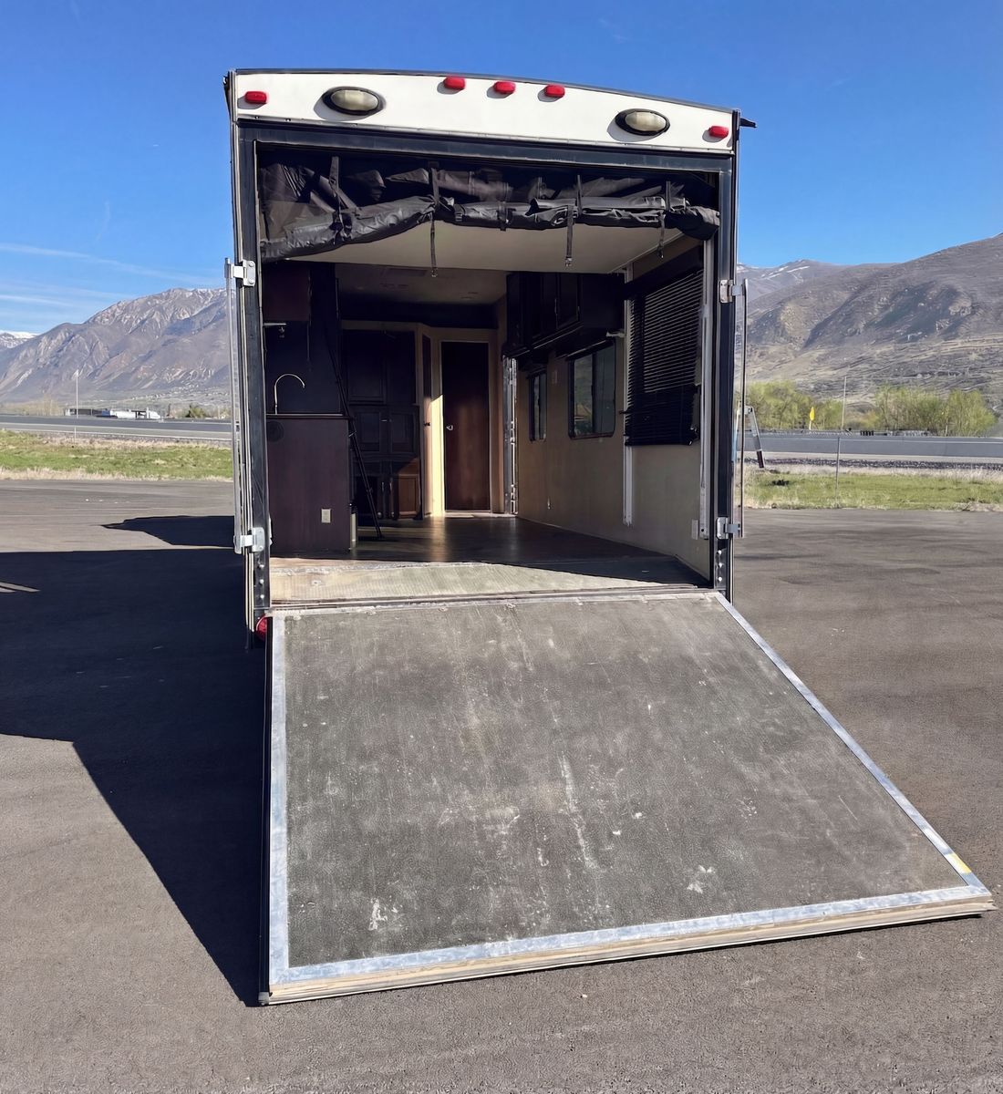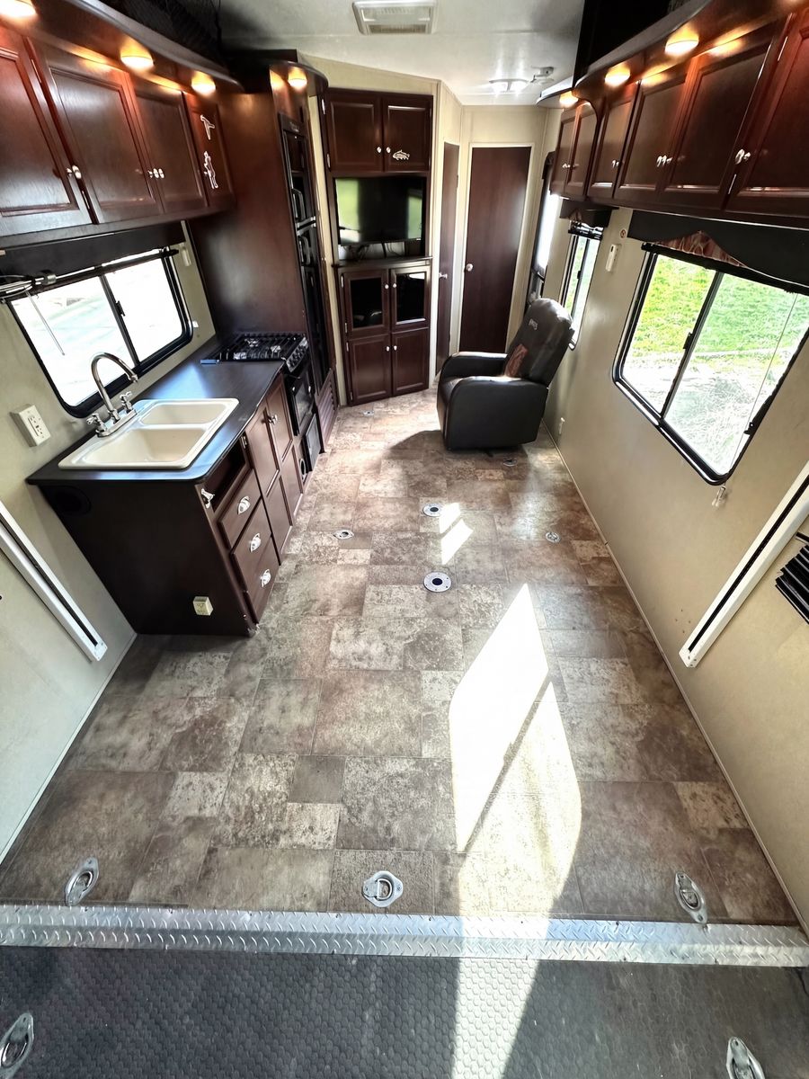 31'6" total length 14' loading length Three queen beds Sleeps 6 comfortably Built-in fuel station for toys Cummins generator Priced to sell fast