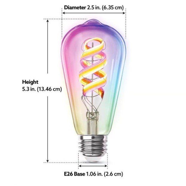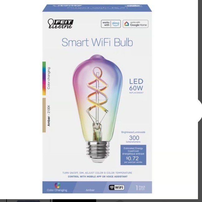 VenmoUpgrade your home to smart home technology with the elegant Spiral Filament Edison Style Light Bulb from Feit Electric. Easily turn lights on/off, dim, and set groups, timers, or schedules. Choose energizing daylight or wind down with relaxing soft white light. Get creative with millions of colors. Its all up to you. A stylish tapered design with clear glass and a curved filament instantly livens up the decor of any room. Use it in pendant lights, wall sconces, and uncovered lamps to show off this gorgeous light that looks as good on as it does off. Control lighting with voice commands through a smart assistant like Alexa or Google Home or use the Feit Electric mobile app for control at your fingertips. Set up is simple: bulbs connect directly to your home Wi-Fi using a 2.4GHz network only. Feit Electric Smart series ST2160/RGBW/FIL/AG filament light bulbs have an average rated life of 15,000 hours/13 years, are RoHS compliant, and are 100% mercury free. It has never been easier to customize your homes lighting to suit your lifestyle.