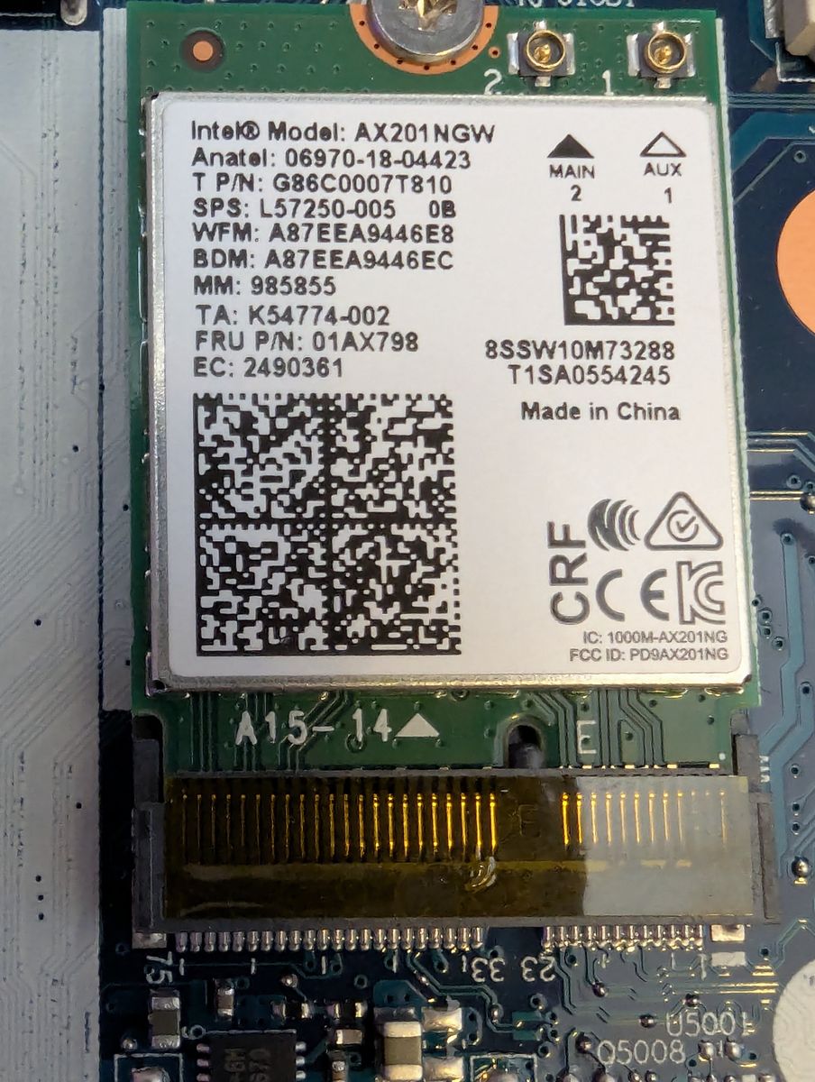 Comes with Intel WLAN card : AX201NGW