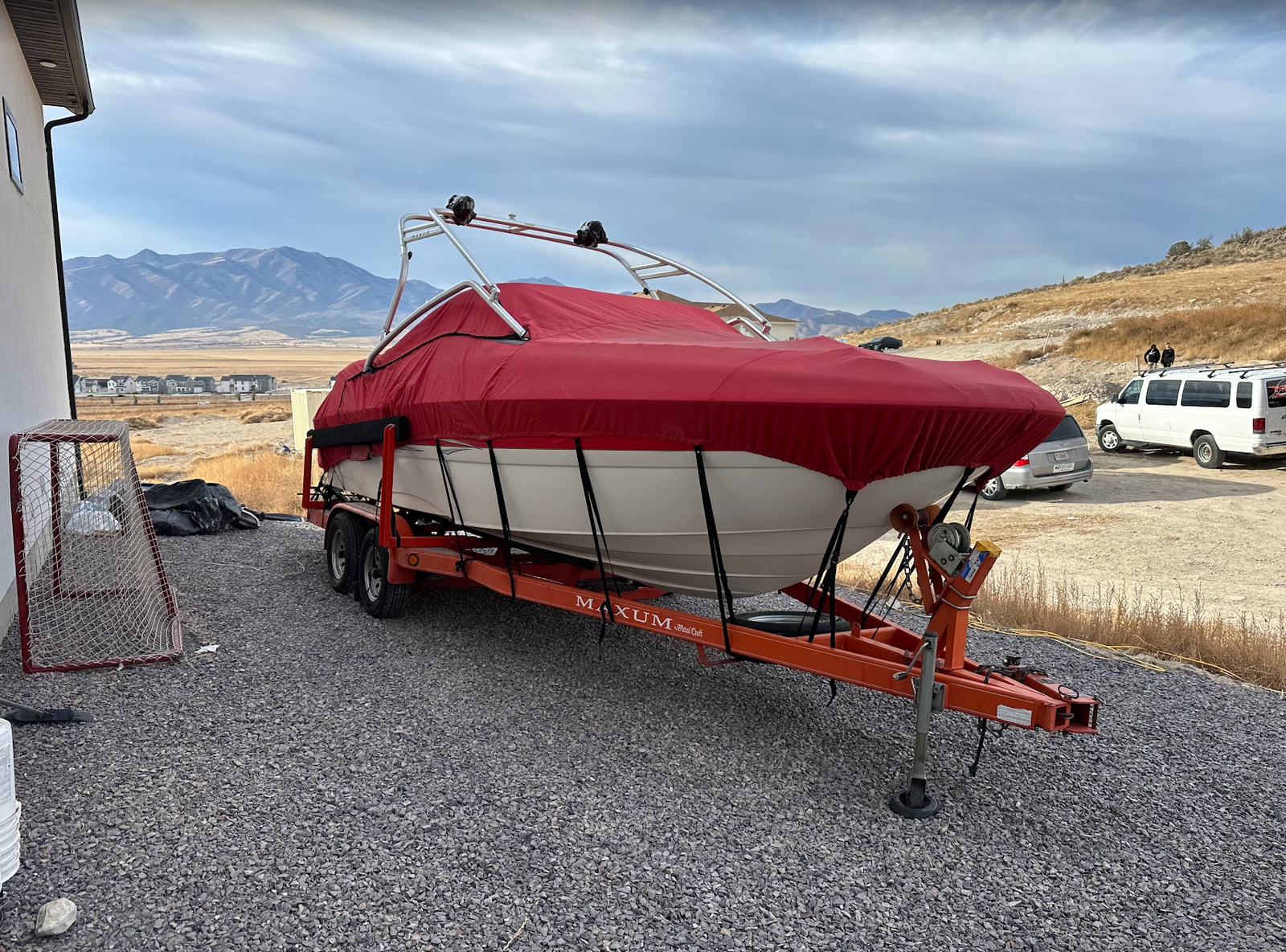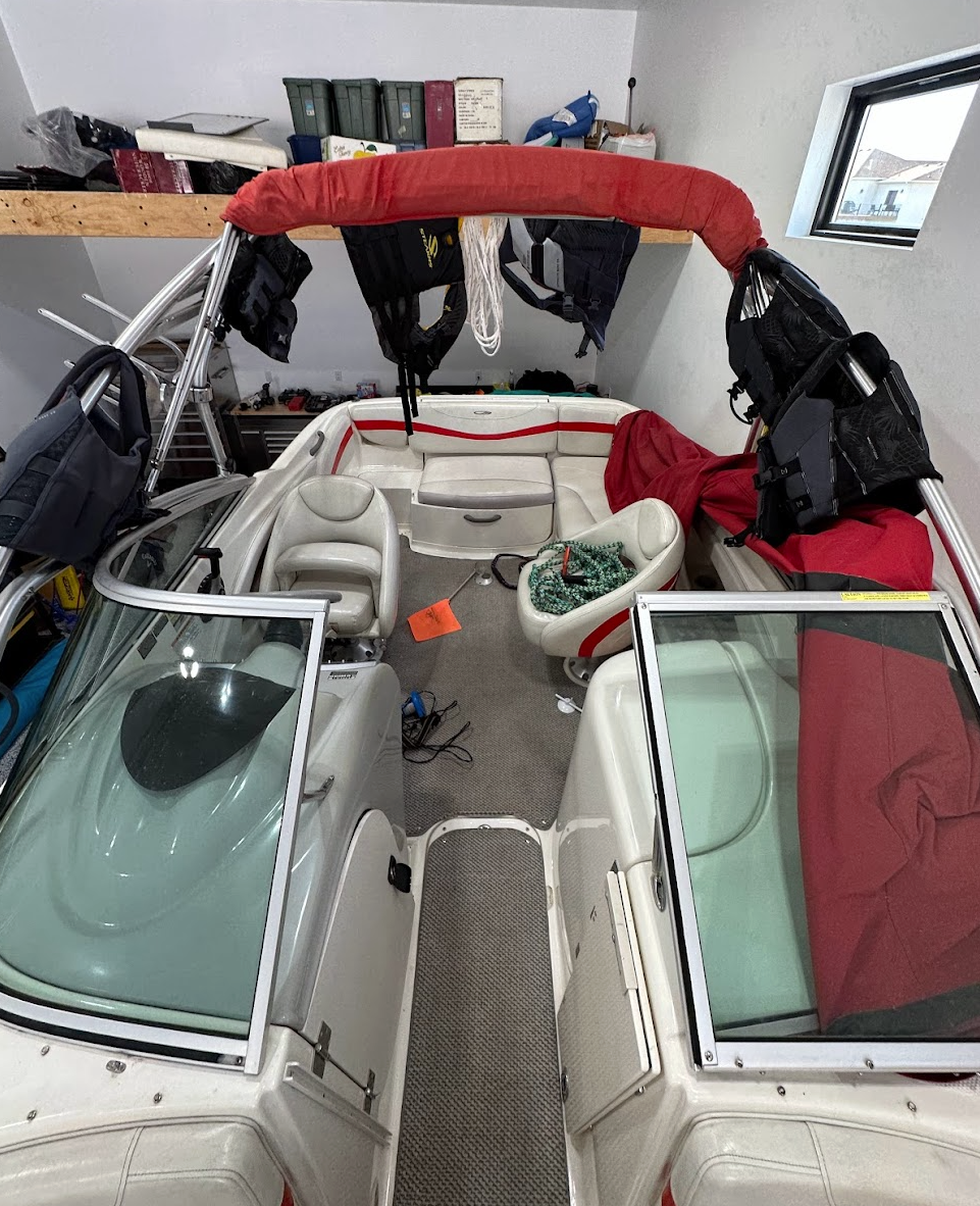 The boat includes the original snap covers for the bow and cockpit as well as a heavy-duty winter cover.
