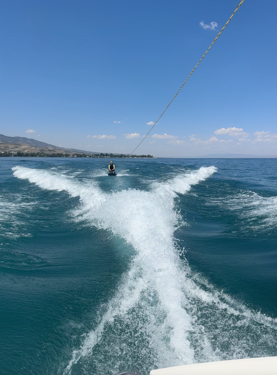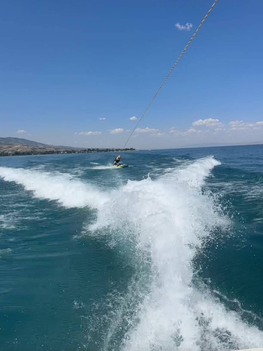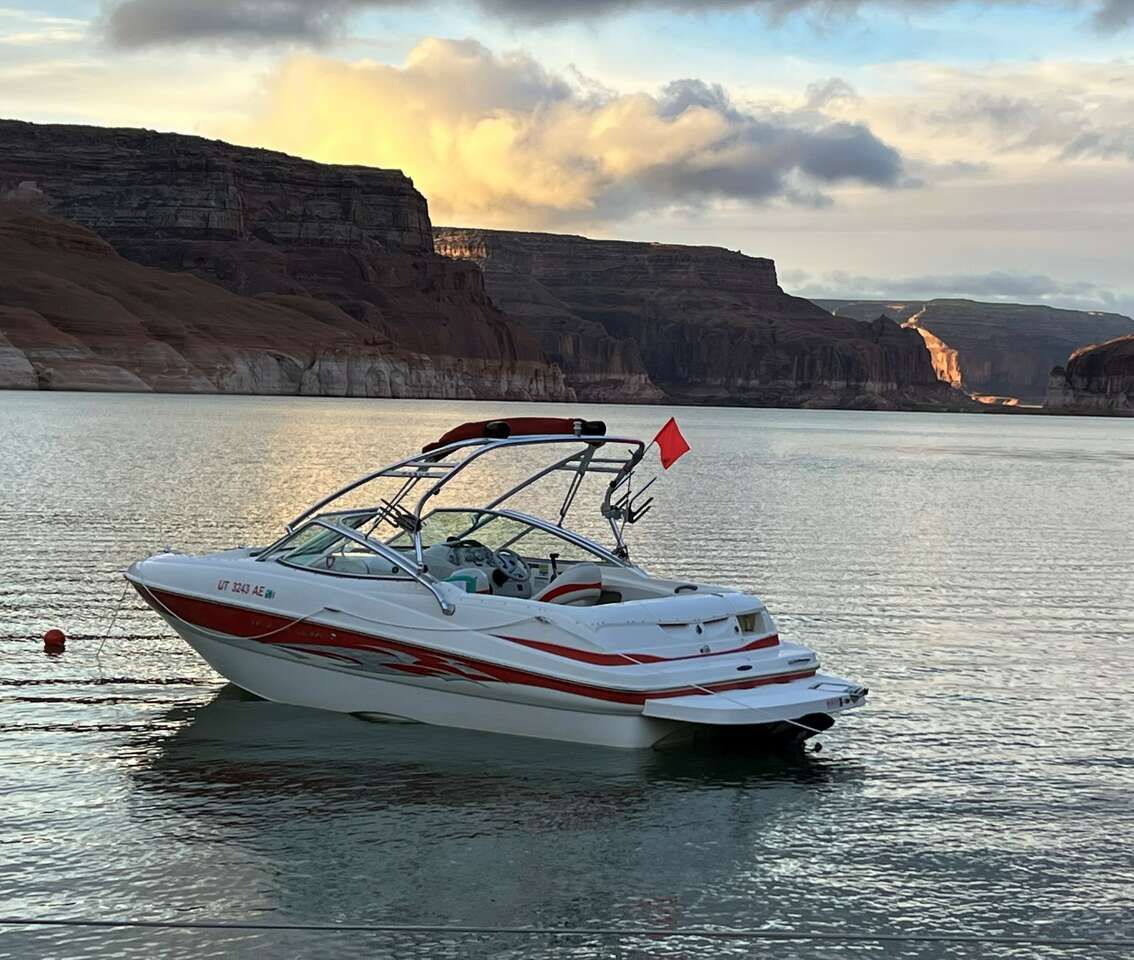 This boat has a great shaped hull and throws a great wake for Wakeboarding, Skiing, Kneeboarding, Tubing, and more.
