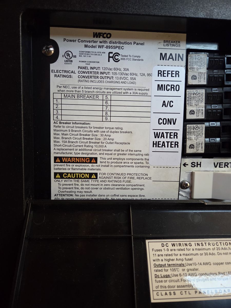 WF-8955PEC Converter/Charger 55 Amp Power and distribution center designed for AC-to-DC power conversion, specifically for charging lead-acid batteries. It offers a 3-stage charging process (13.2V–14.4V DC) and features built-in safety protections like overload and short-circuit protection.