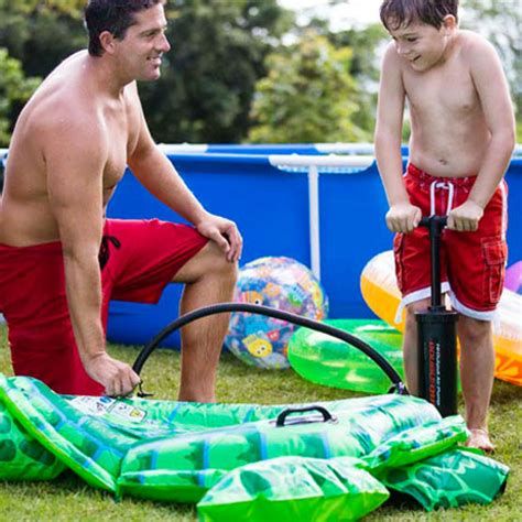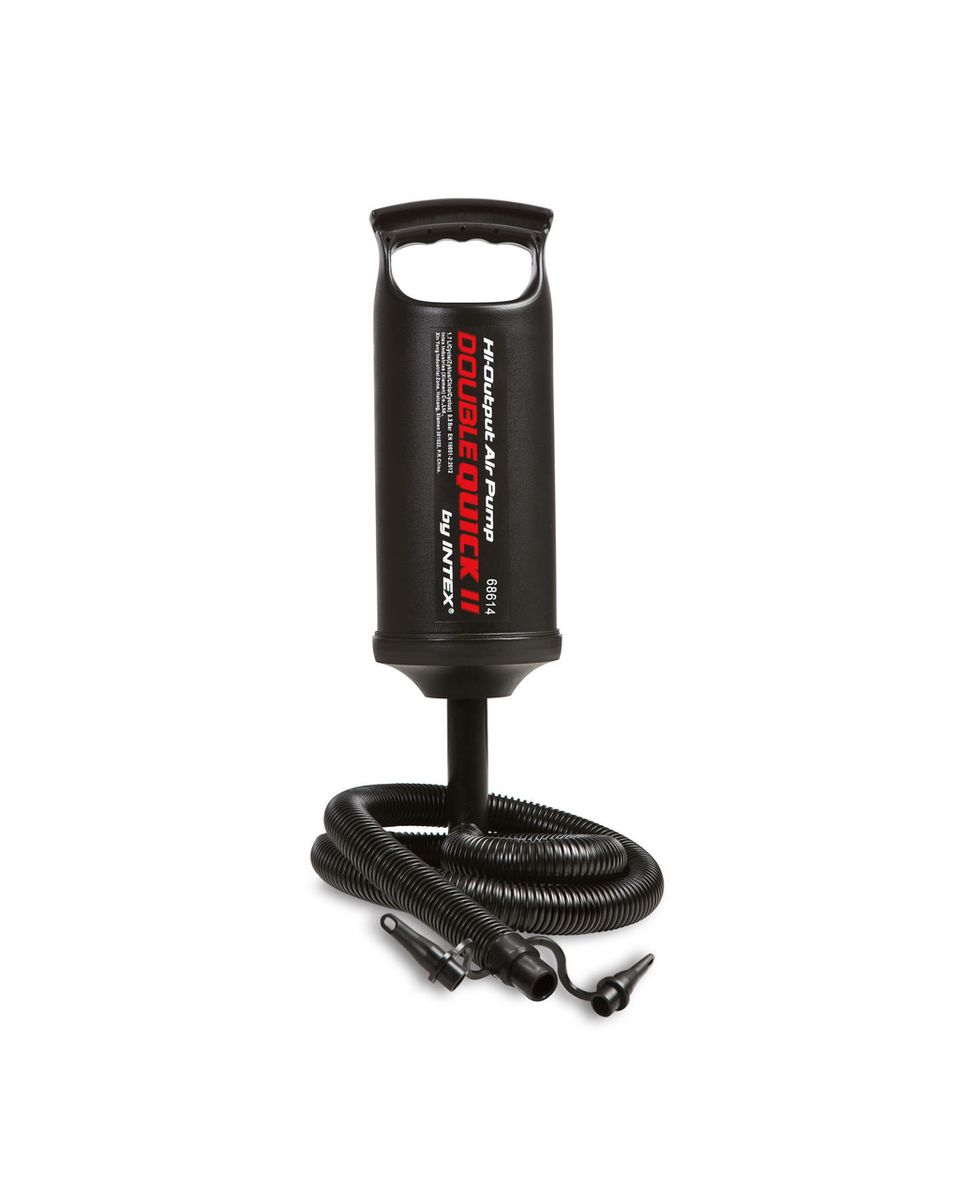 Great for air-mattresses, or other large inflatables, the simple to use Double Quick II Hand Pump is the perfect accessory for inflating with ease. Designed to pump air on both up and down strokes, this double action pump maximizes airflow, making inflating fast and simple. This hand pump includes 3 interconnecting nozzles with hoses to inflate different types of inflatables.