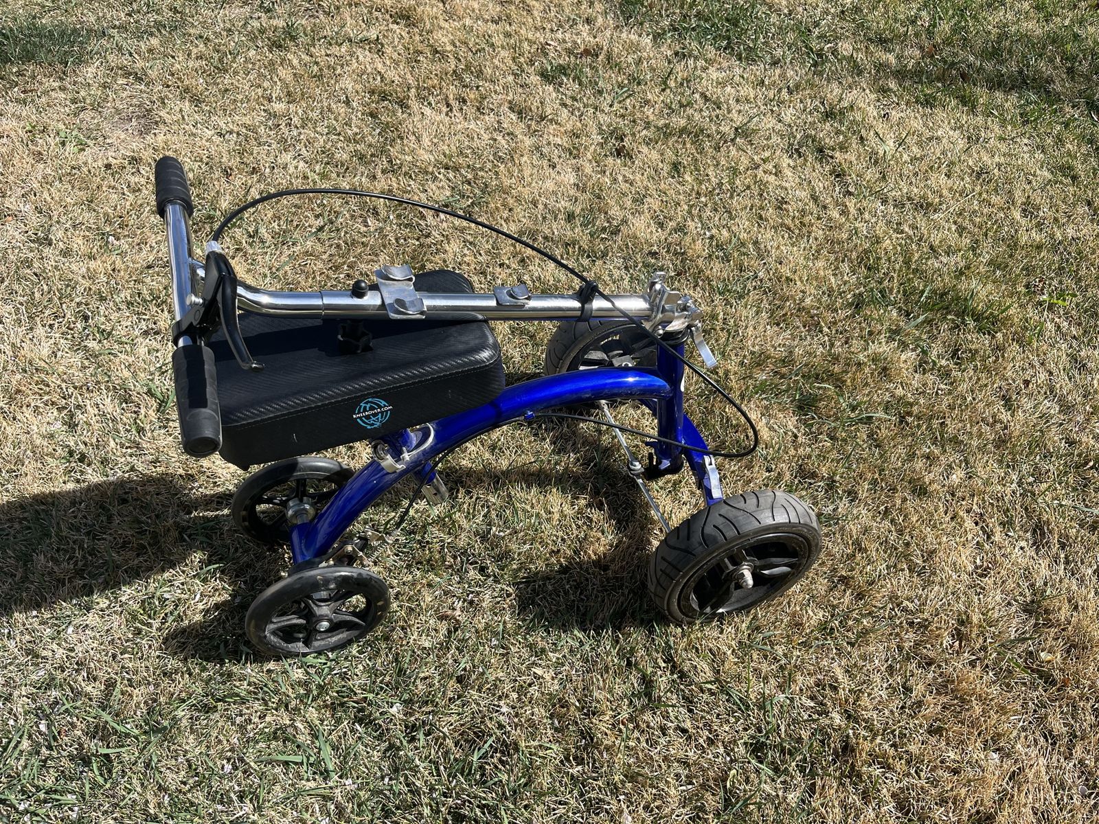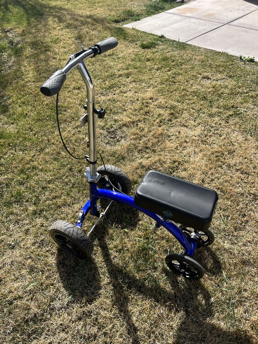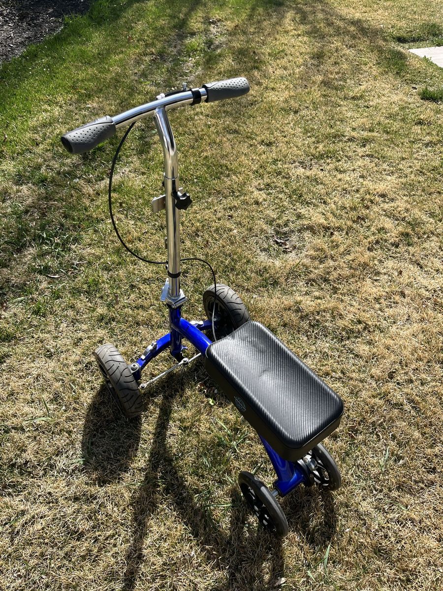 KneeRover All Terrain Knee Scooter with adjustable seat and handlebars, handlebars release, so it is easy to fit in trunk