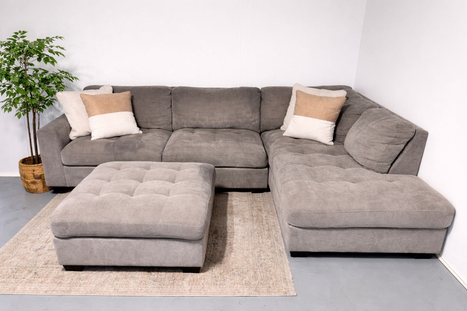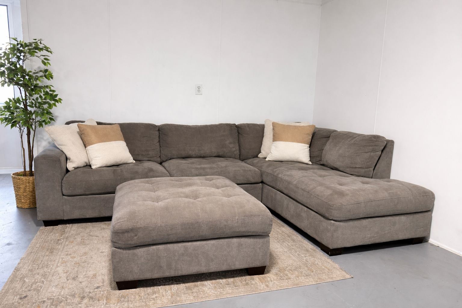 ApplePayModern Thomasville 2 piece chaise sectional with ottoman in great condition condition. Perfect for living rooms, apartments, or anyone wanting a high-end look without paying retail.