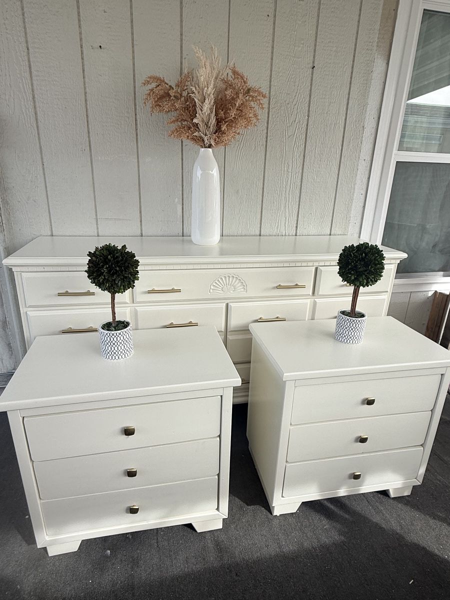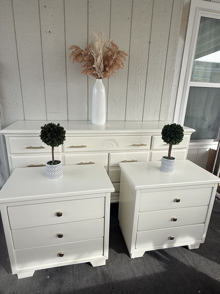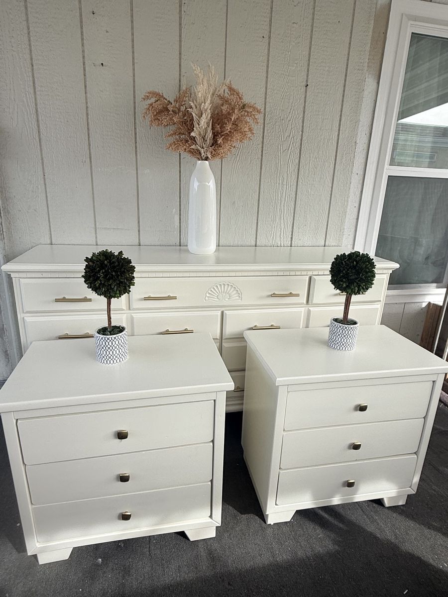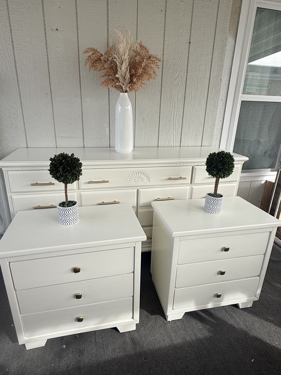 Beautiful set 1 dresser 2 nightstands solid wood in very good condition measured 64”X17,5”X35” Nightstands 25.25”X150X25” $550 set